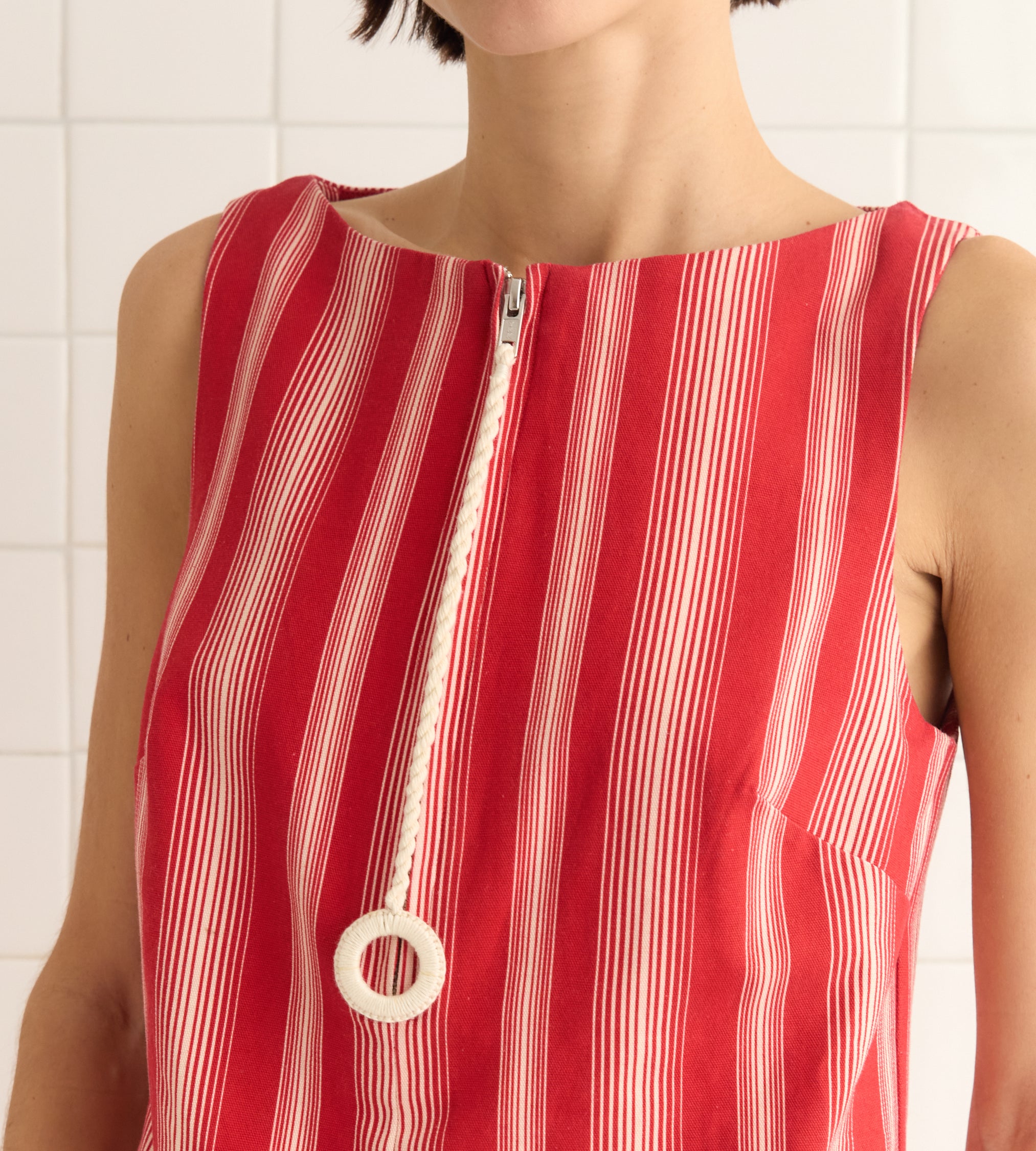BODE Women’s Ready To Wear Parasol Stripe Dress | Red & White