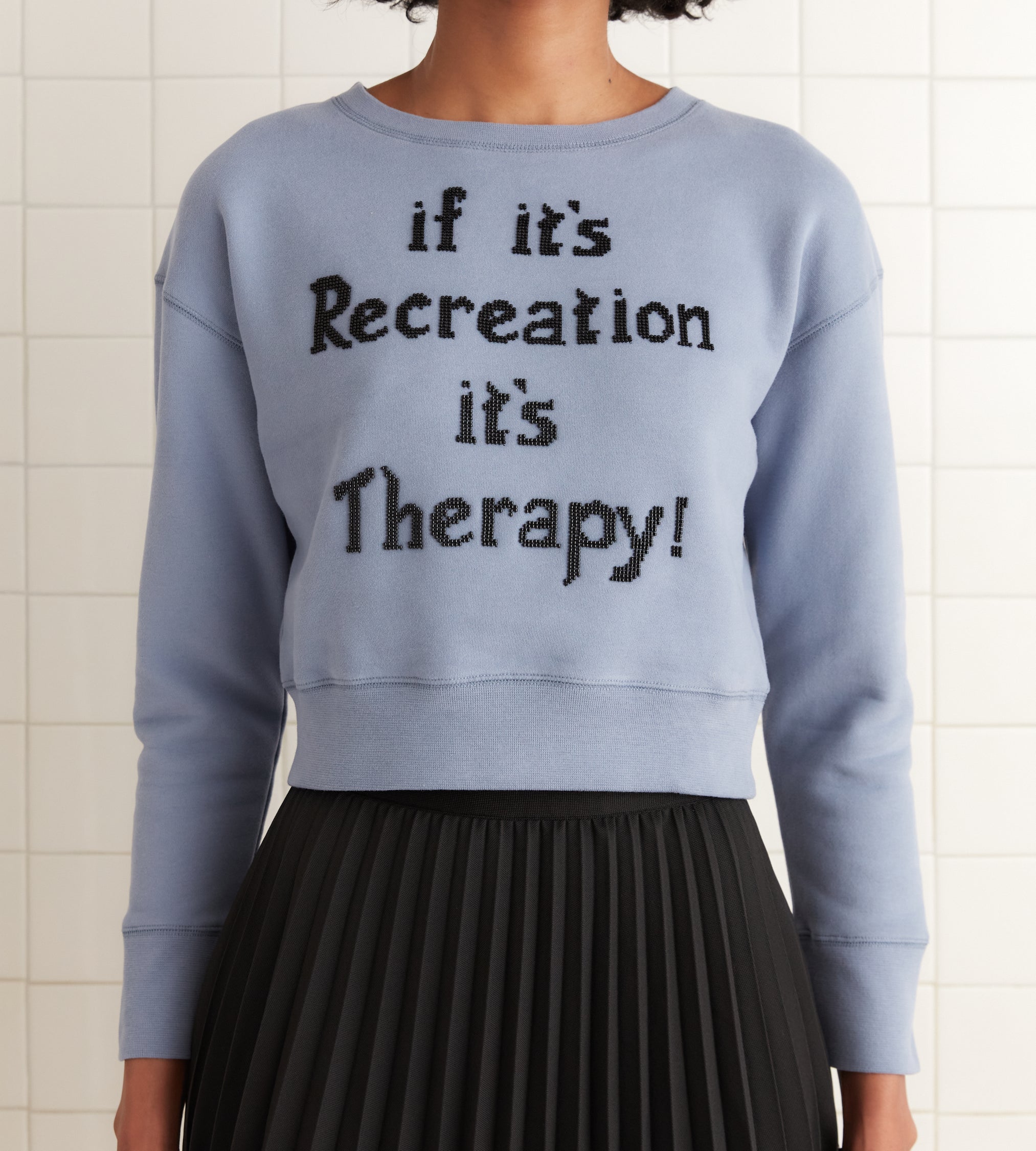 This sweatshirt is inspired by a printed tee from a college kinesiology department, circa 1974. We reproduced the lettering for this style, which has a shrunken, cropped fit.