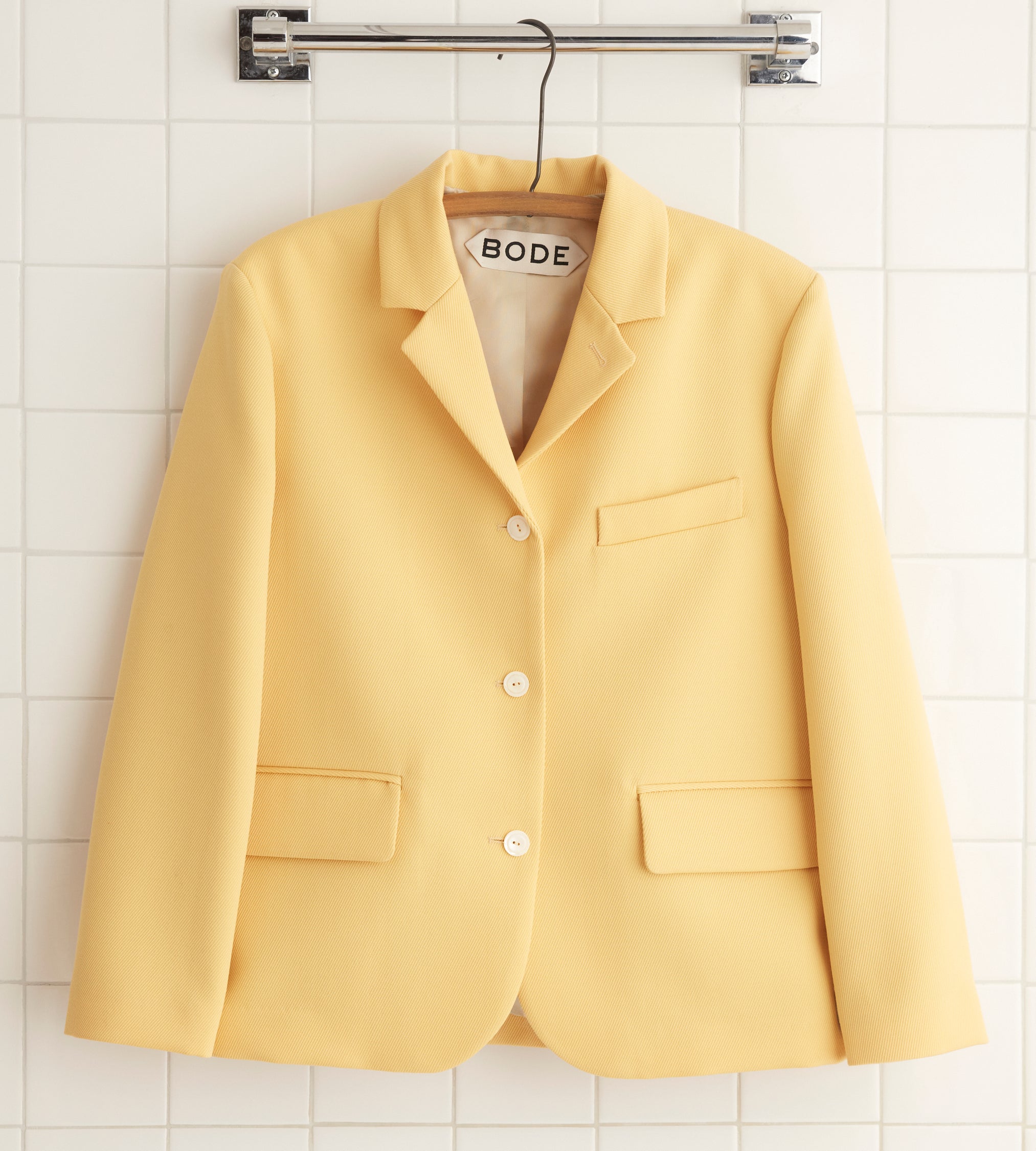 This style is inspired by a women’s suit jacket from Italy. We reproduced the silhouette in wool twill.