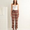 These pants are inspired by a pair of 1920s beach pajamas, a loose silhouette worn over swimsuits that evolved out of sleepwear. The wide popularity of beach pajamas helped to normalize women’s pants in the early 20th century.