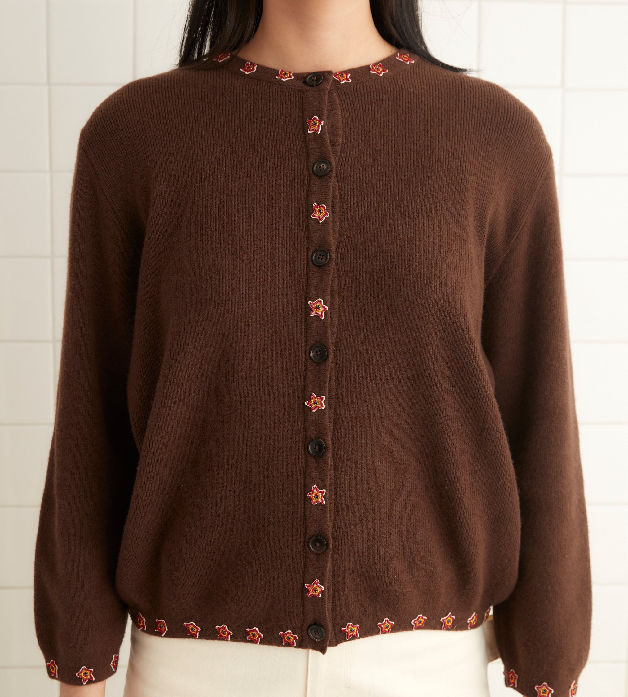 BODE Women’s Ready To Wear Starflower Beaded Cardigan – Brown | Brown