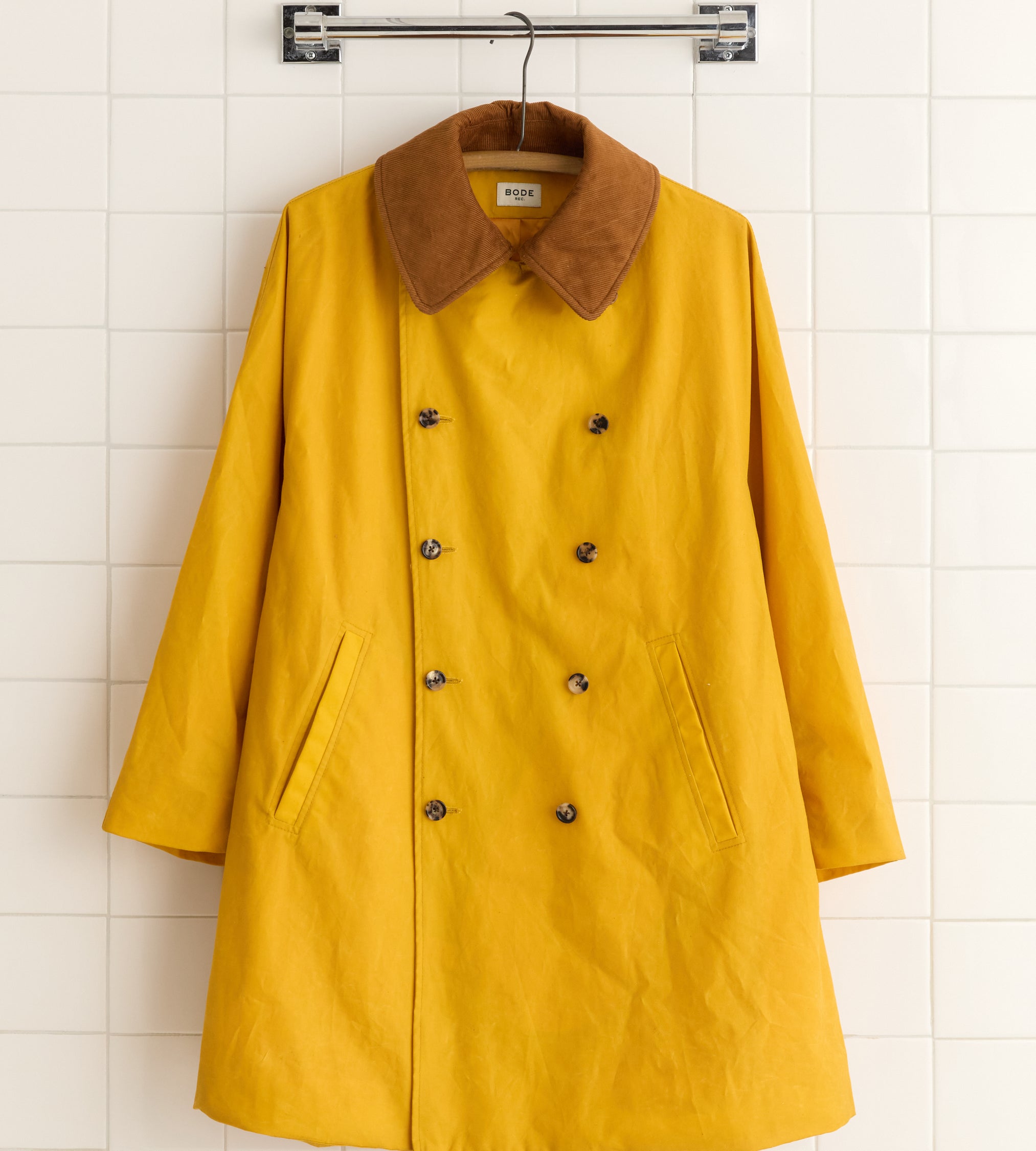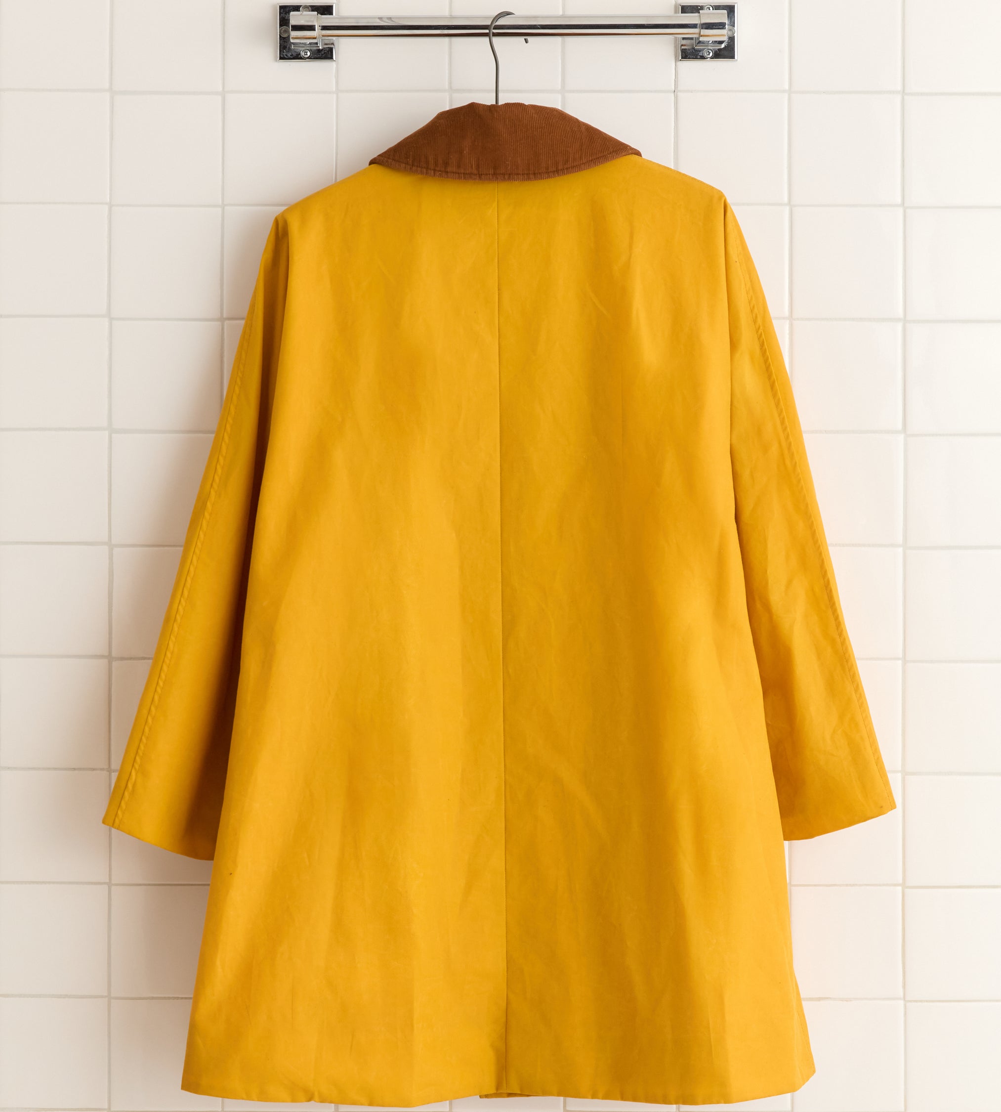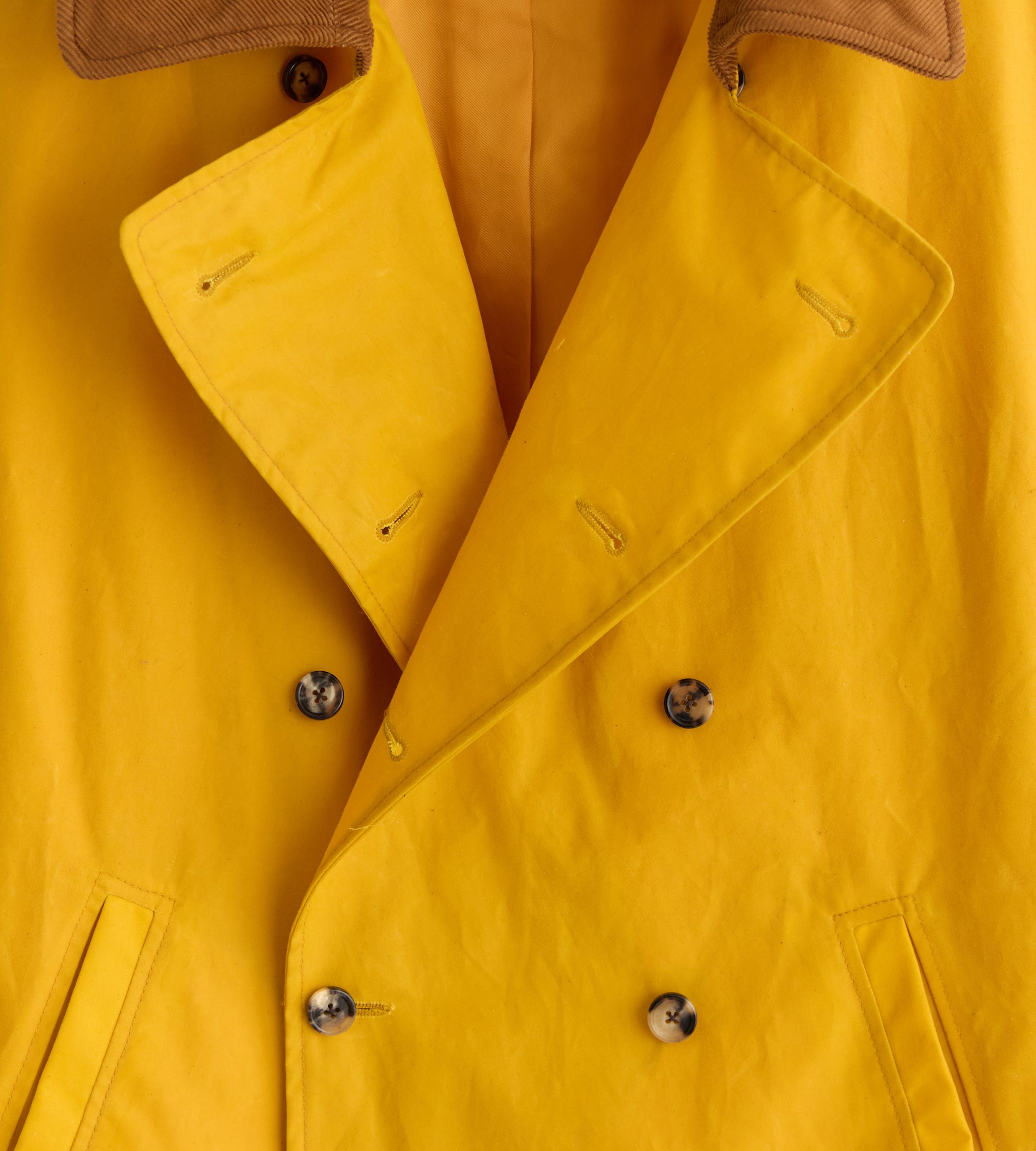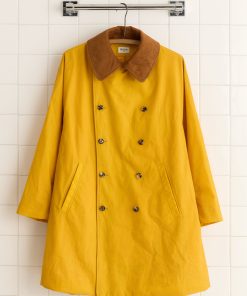 This coat is inspired by a French peacoat from the late 20th century, which was made in this loose, swing silhouette. We reproduced the original cut for this style, which is double-breasted with a wide, rounded collar. The coat is made from water-resistant waxed cotton from historic workwear mills in Britain. The finish improves with age as the wax wears down.