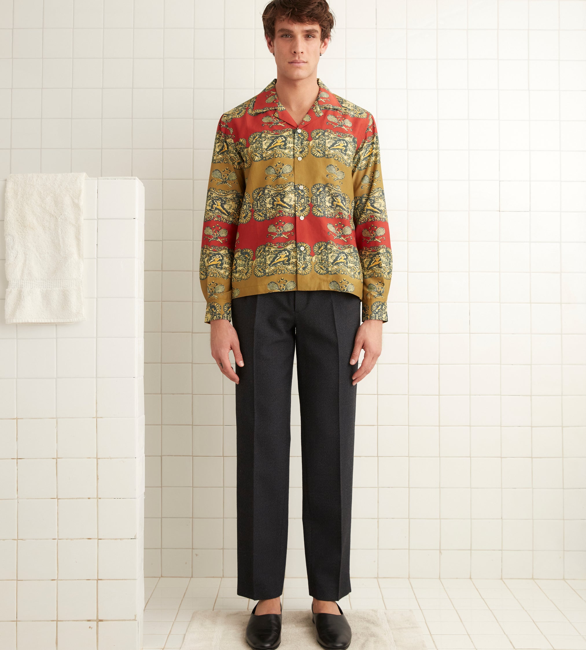 Pantalon sarouel en velours de coton à grosses côtes rose.