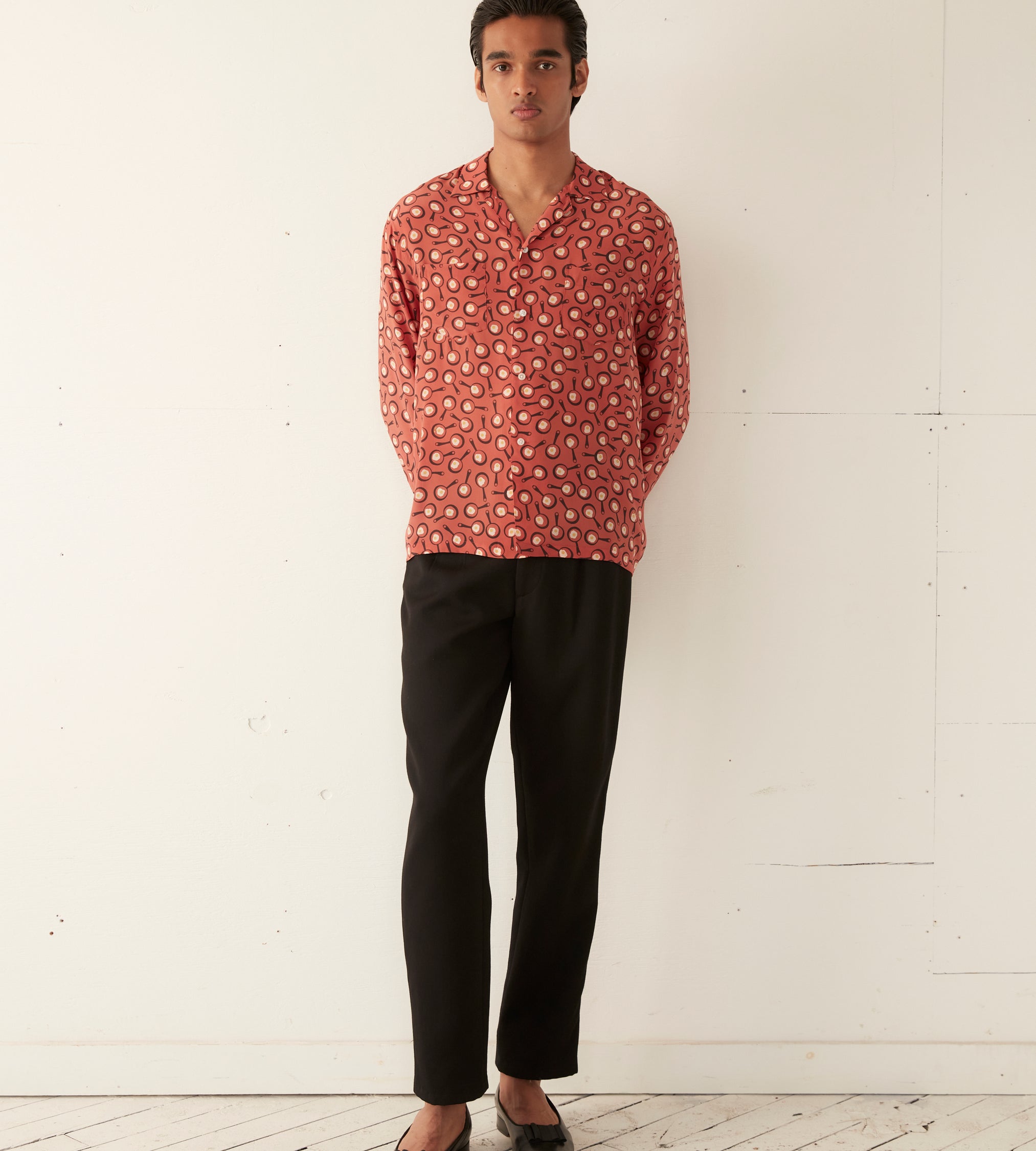 Pantalon bébé en velours de coton milleraie noir parsemé de coquelicots rouges en all-over.