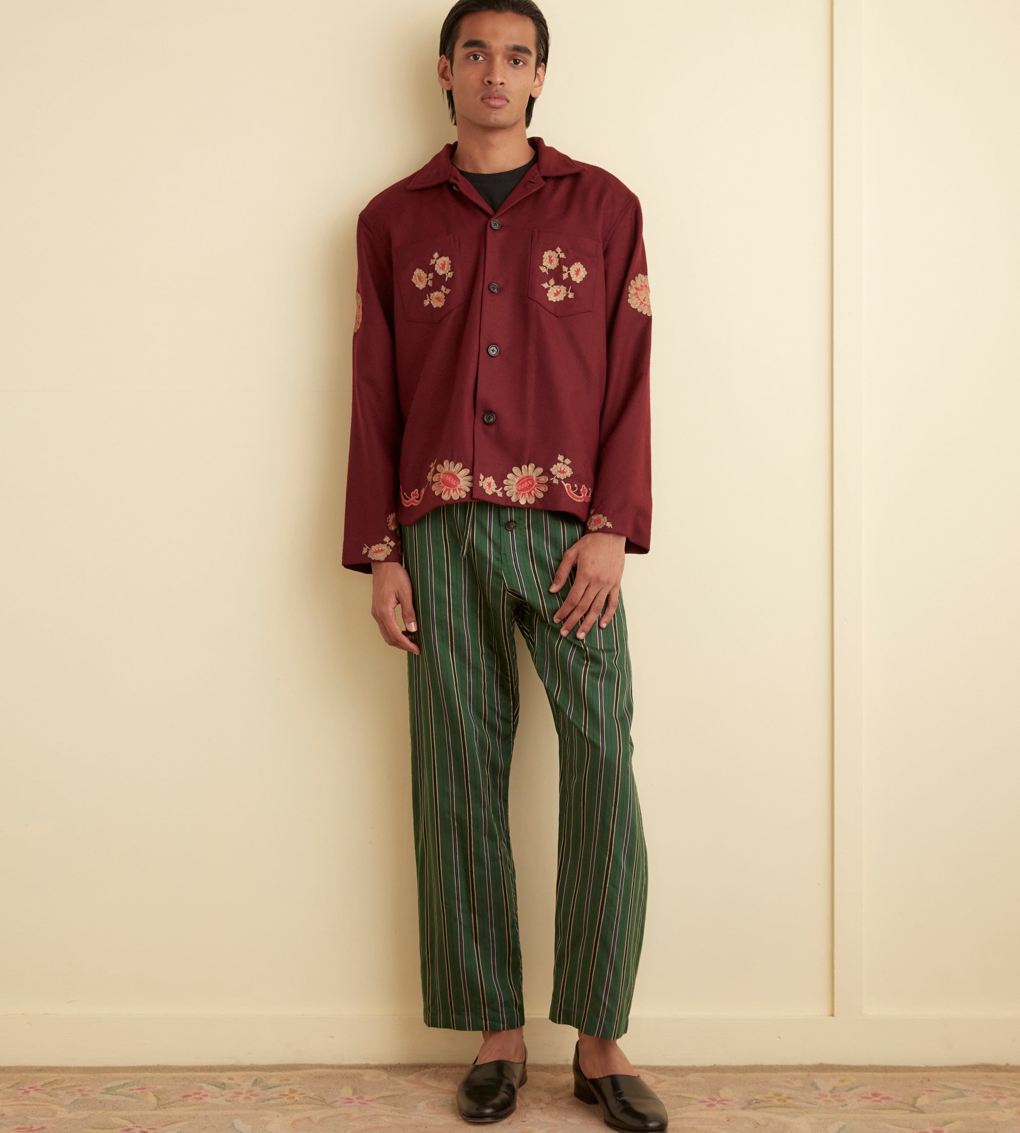– Col tailleur brodés de guirlandes de fleurs ton sur ton