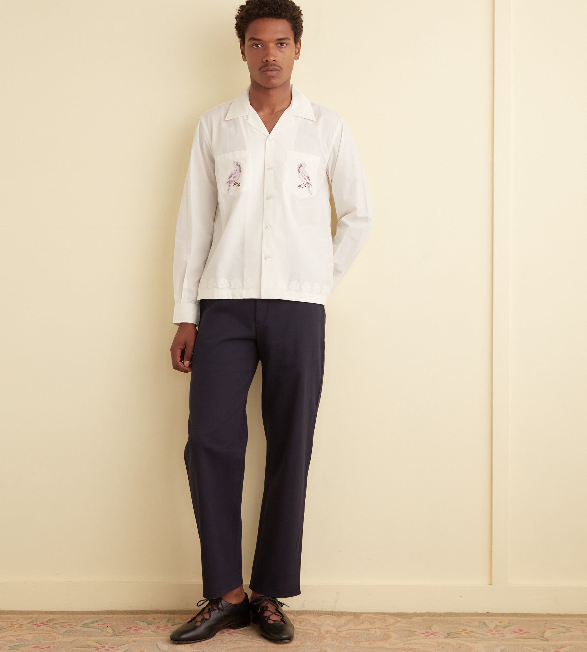 – Patte de boutonnage et boutons en nacre naturelle soulignée par des festons sur ton