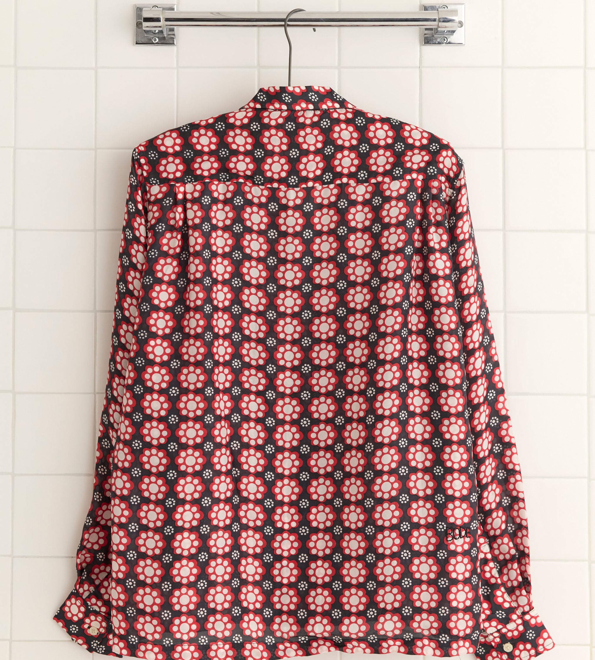 Blouse brodée en coton noir.