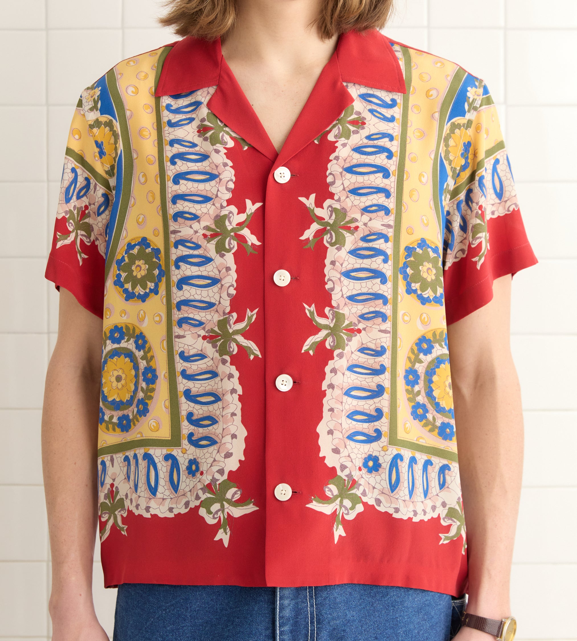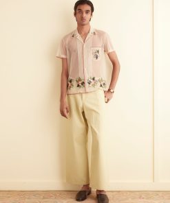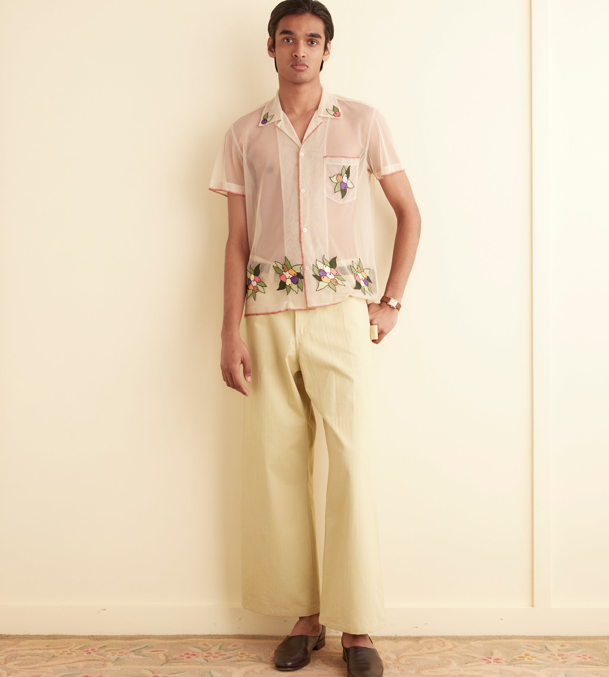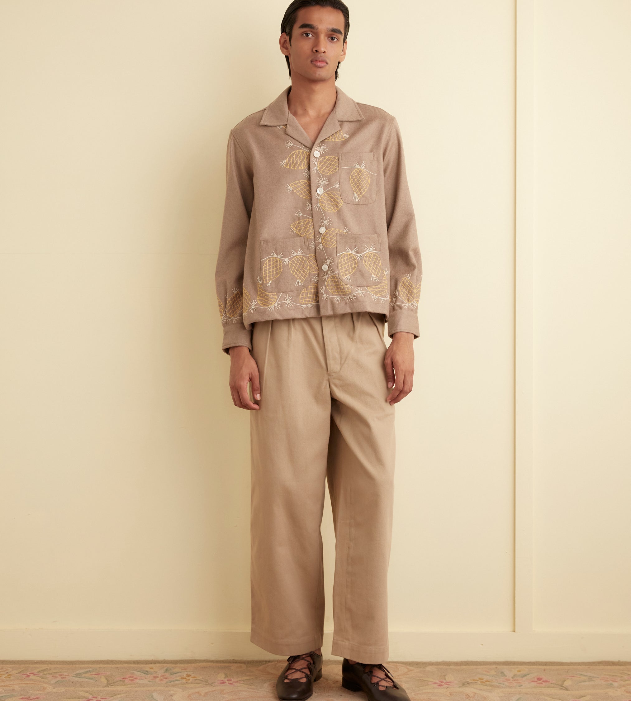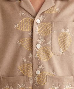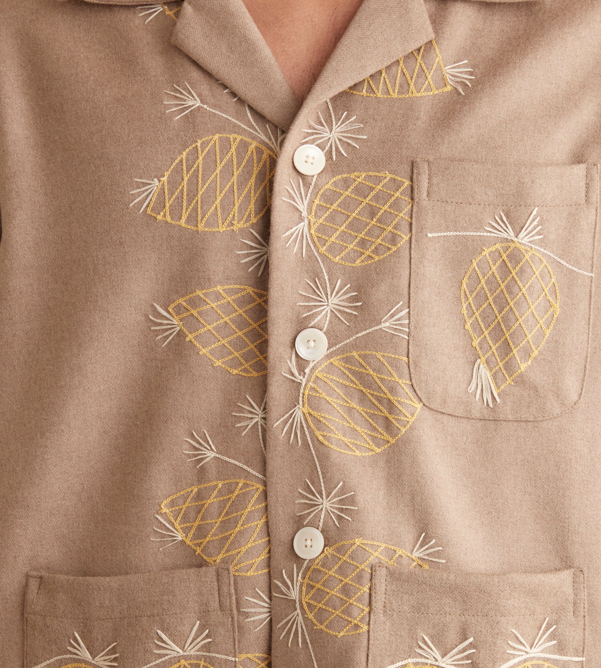 – Décolleté en V aux revers brodés comme le col