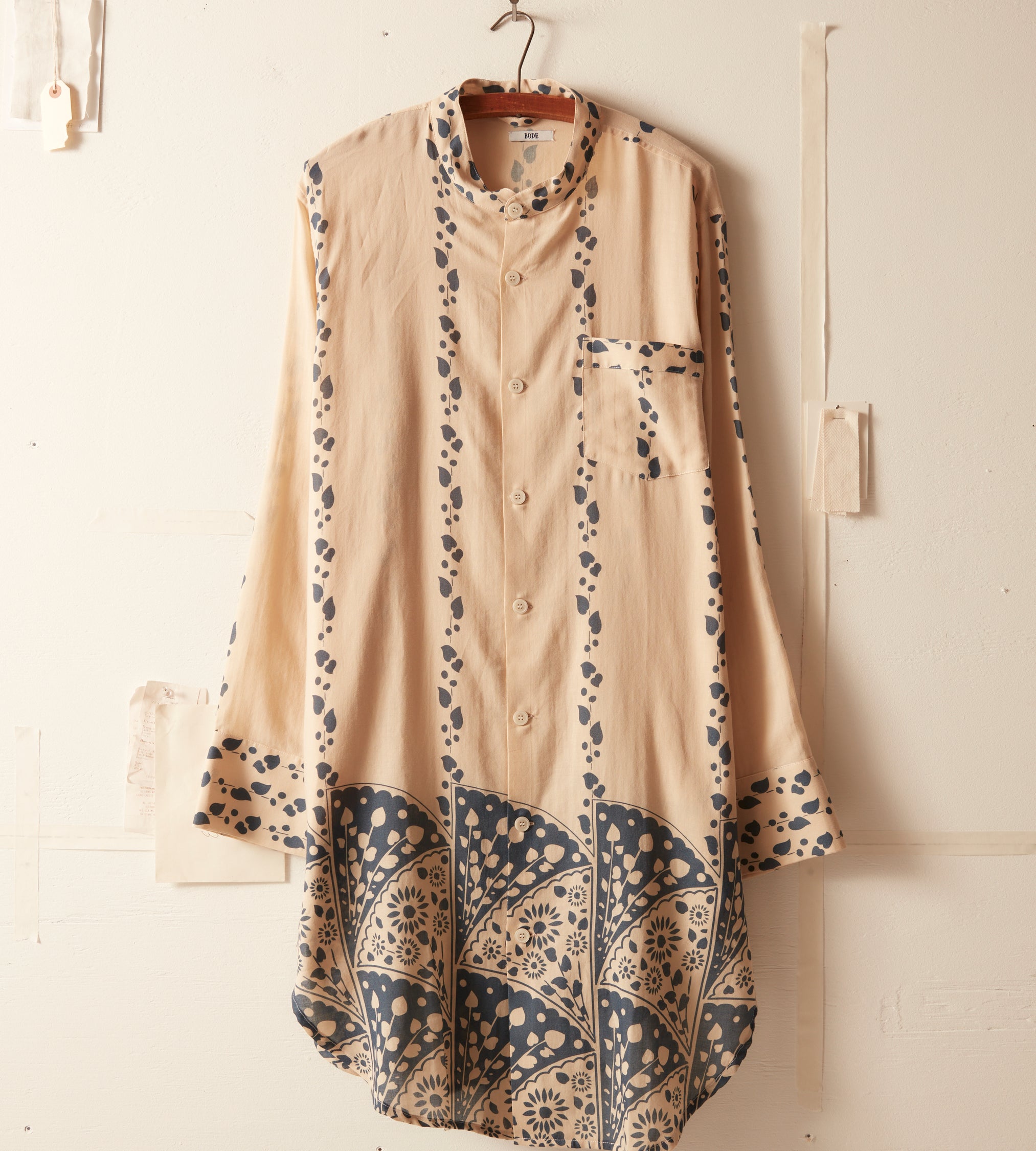 – Fronces autour de l’encolure ronde, smockée par des artisans indiens