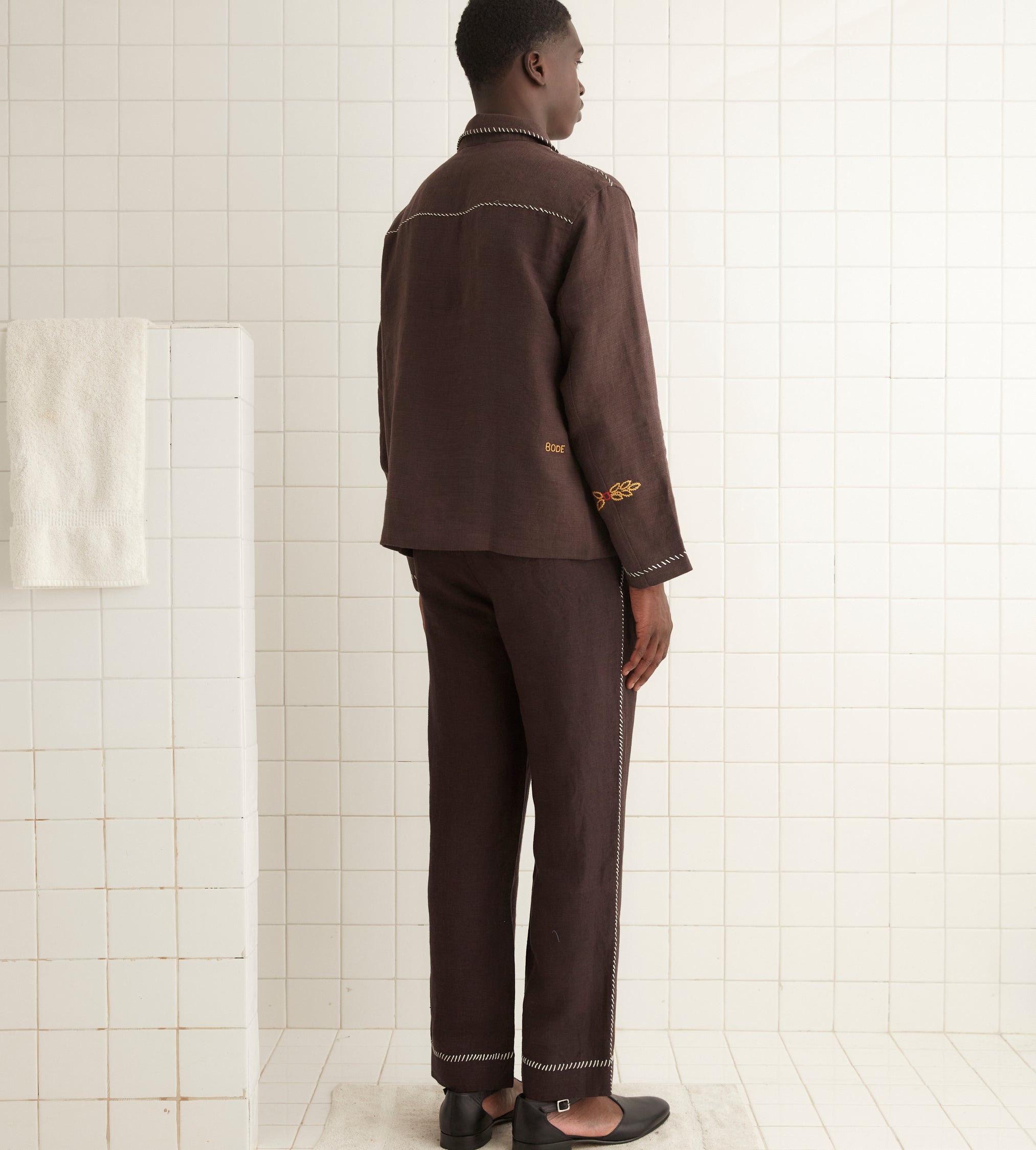 Veste en laine mélangée à motif pied de coq grège, chocolat et bleu.