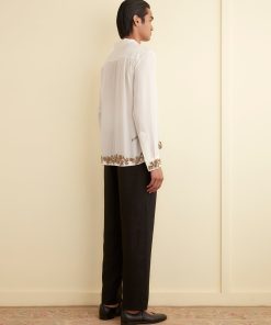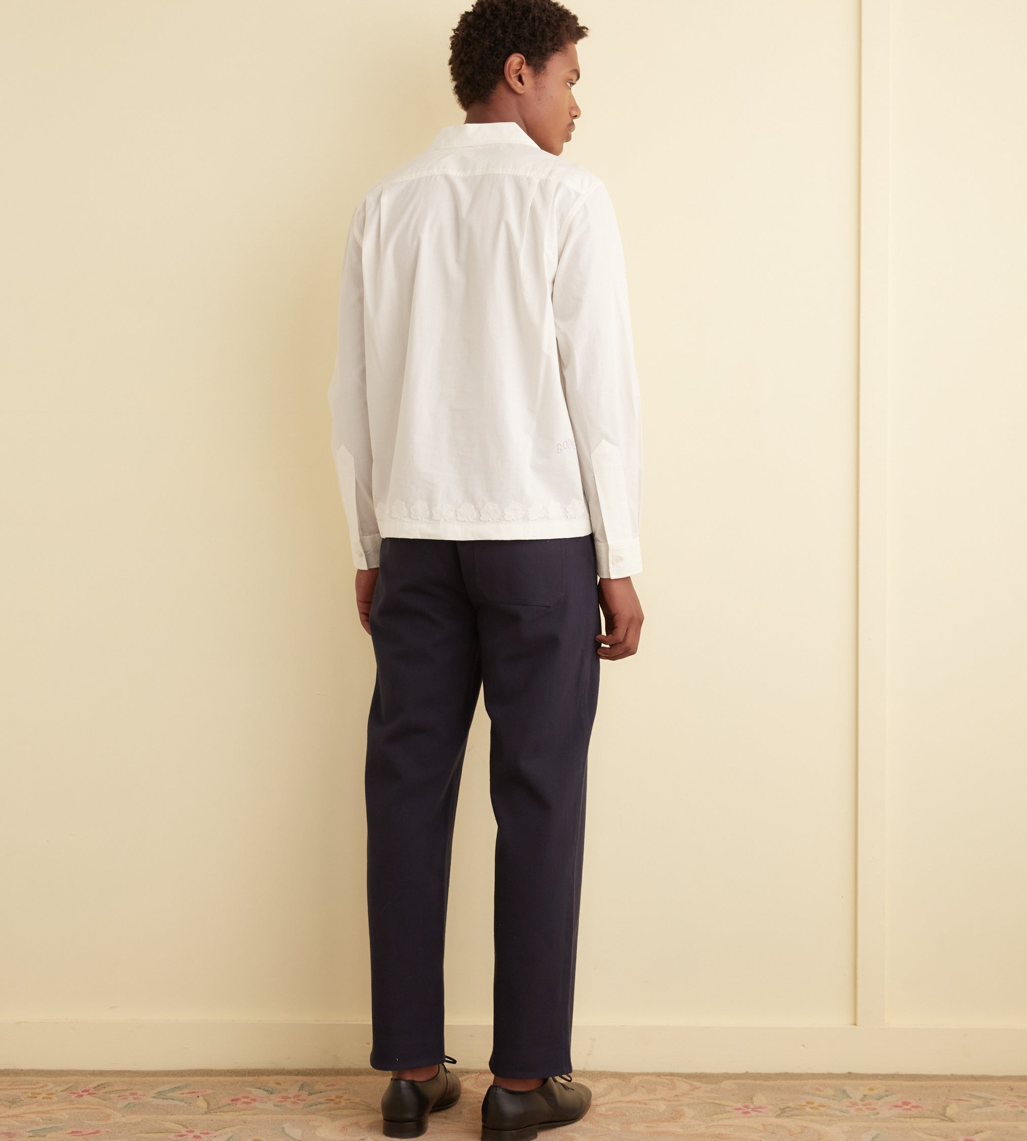 – Manches longues resserrées aux poignets par une manchette double boutonnée