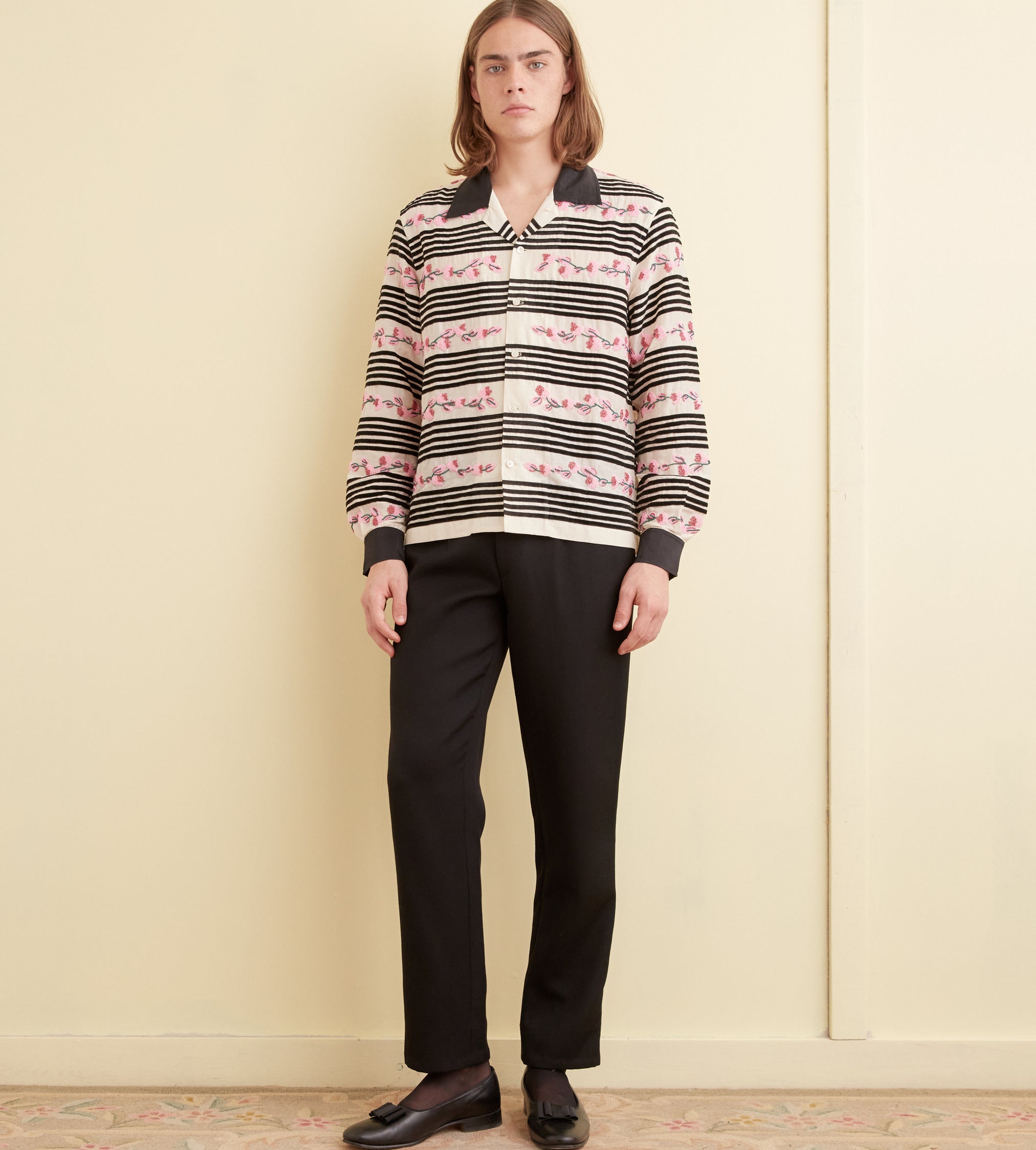 Pantalon en velours de coton à grosses côtes rouge brique.