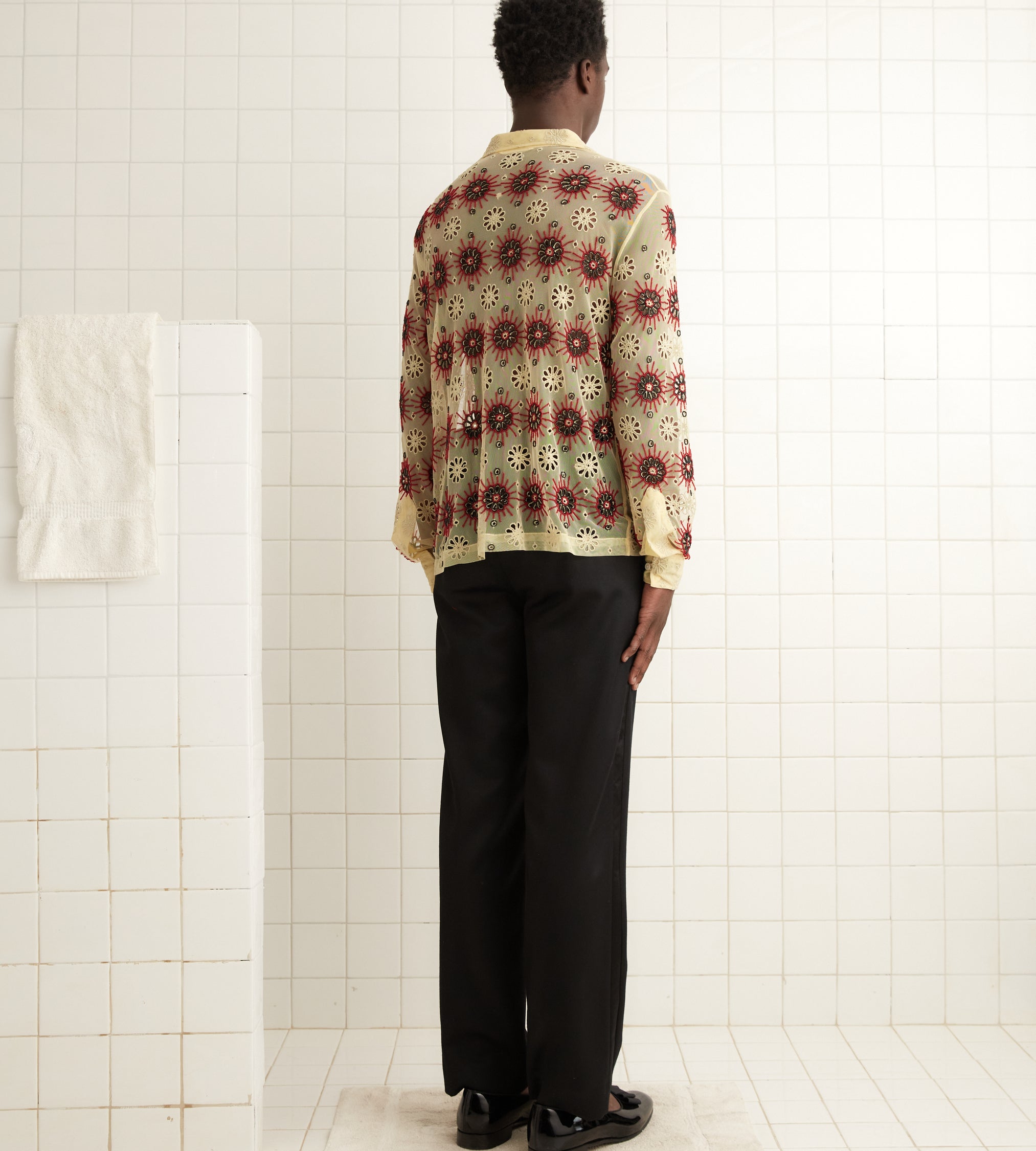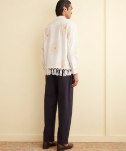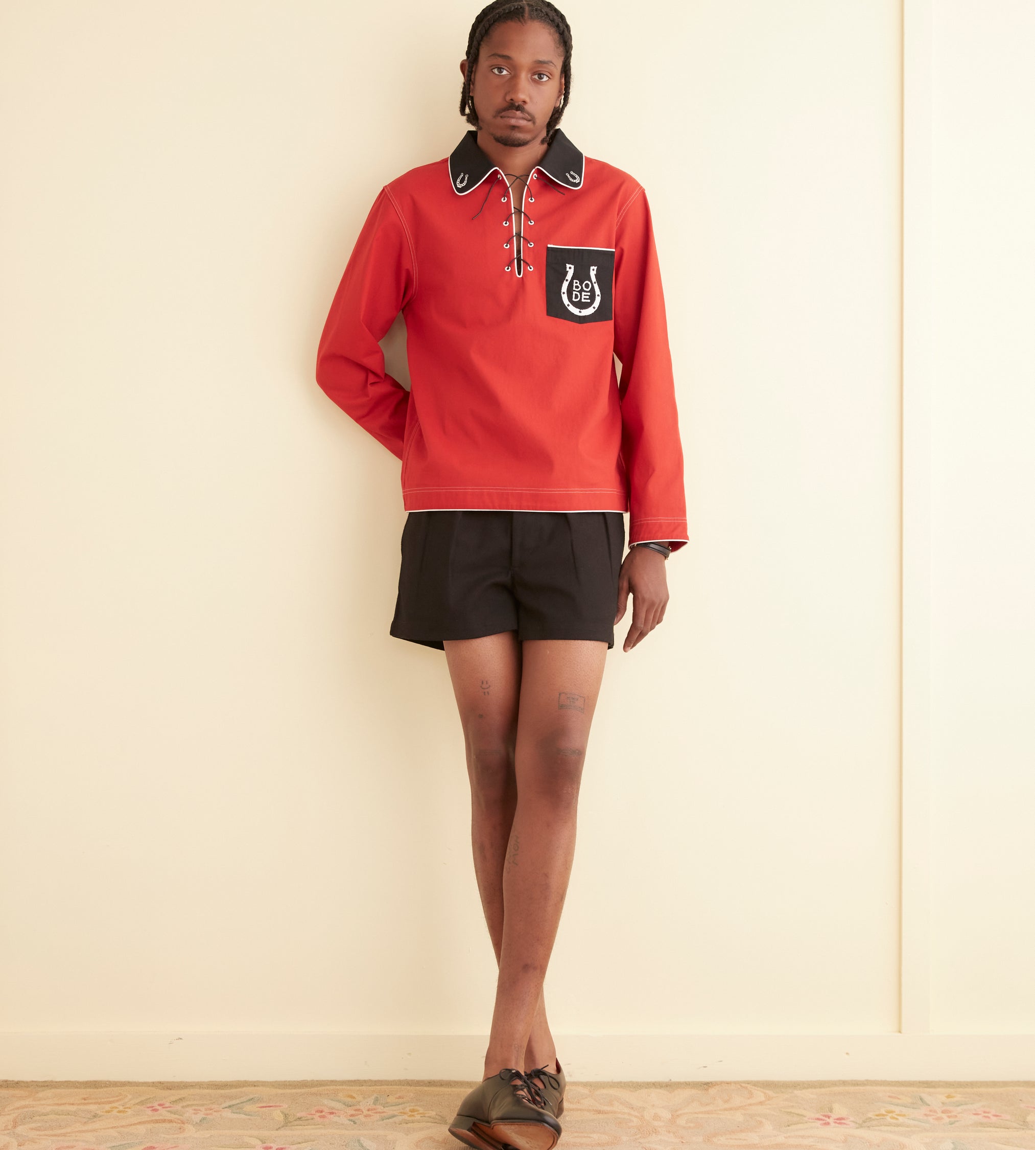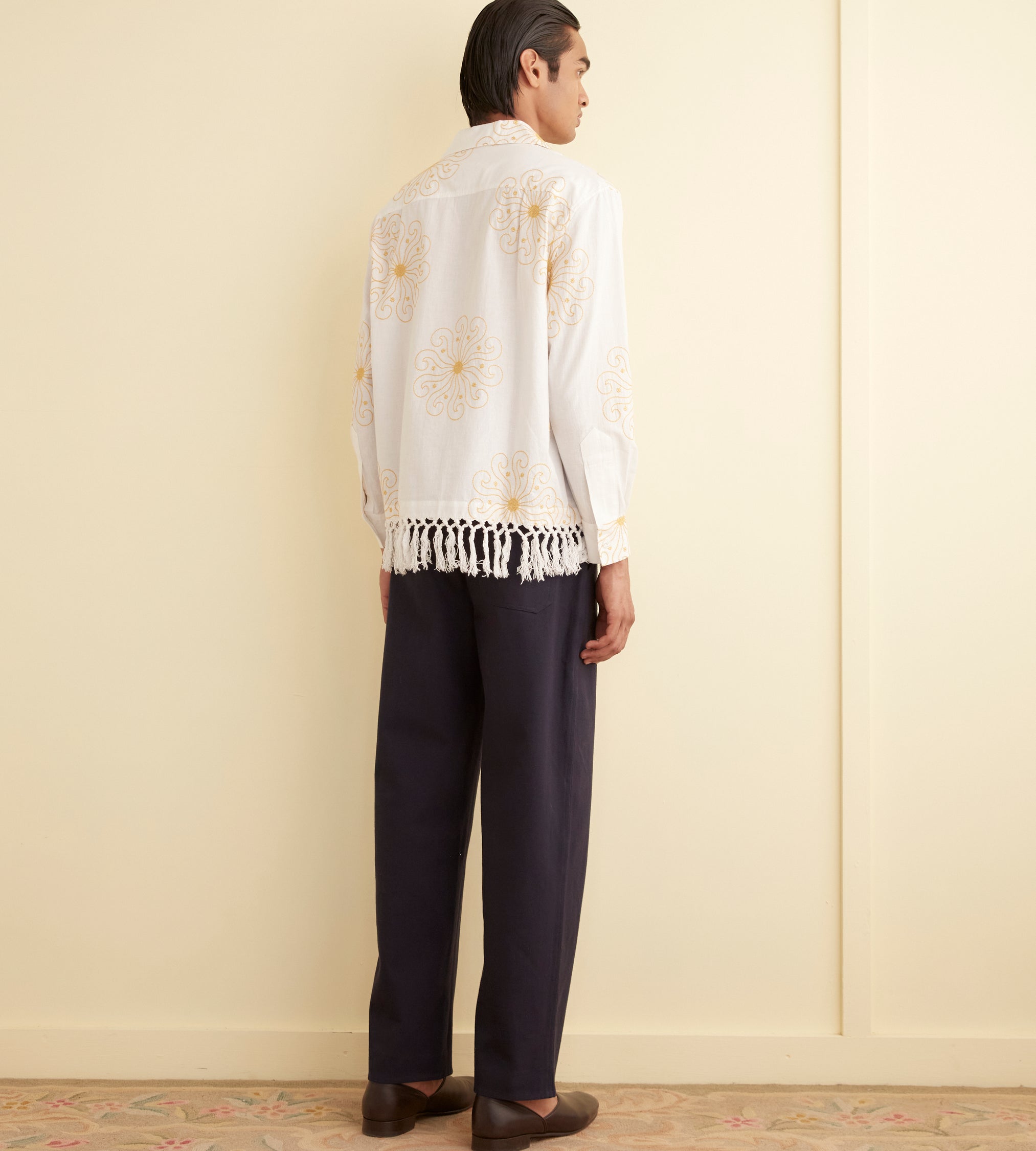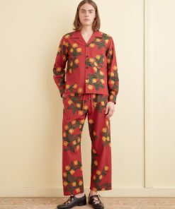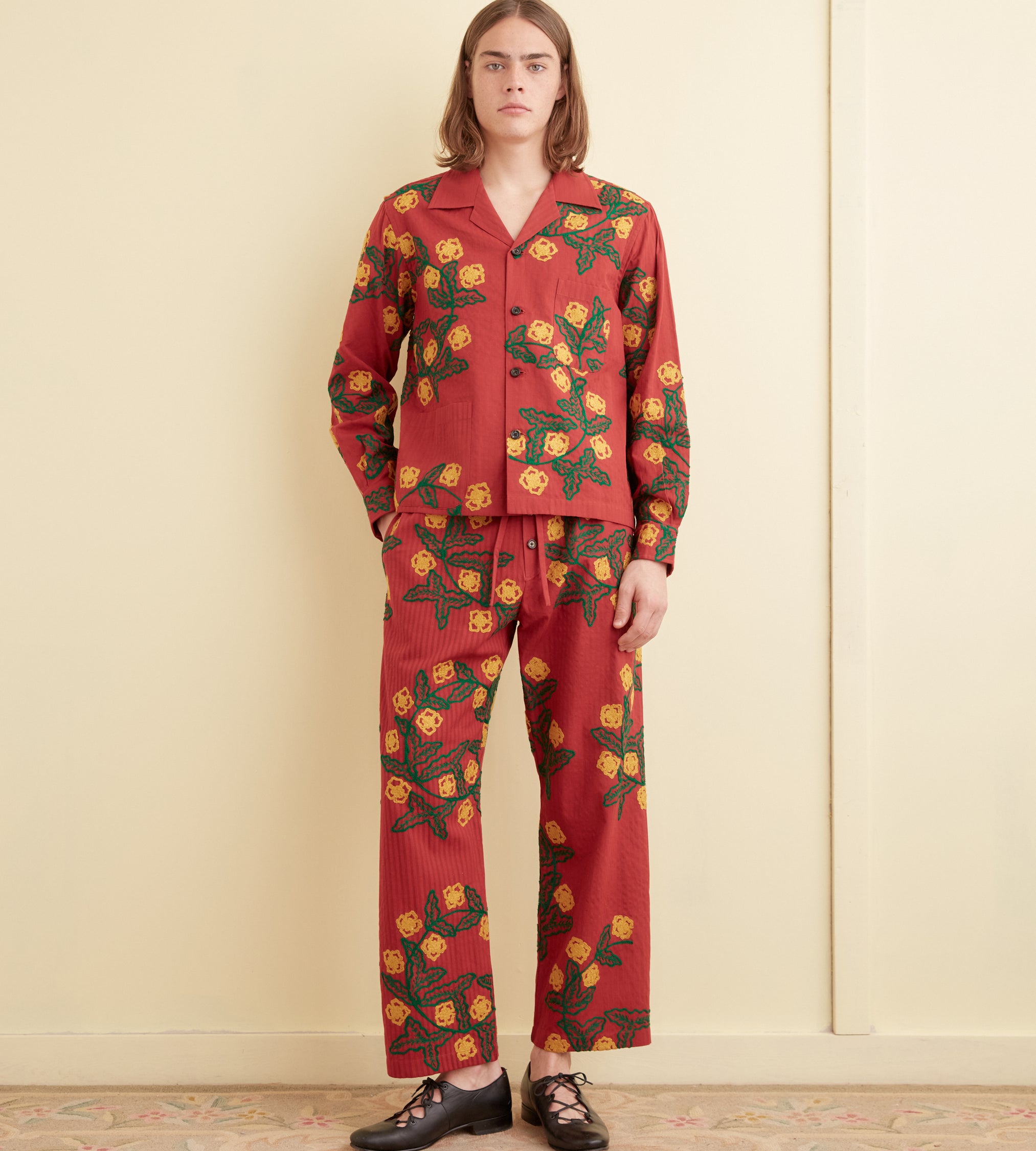Pantalon châtaigne en velours de coton à grosses côtes.