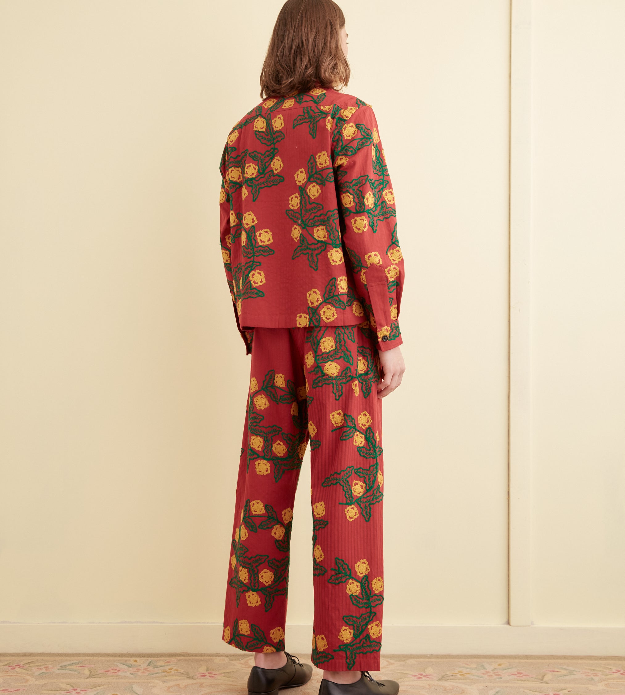 Pantalon rose bonbon en velours de coton à grosses côtes.