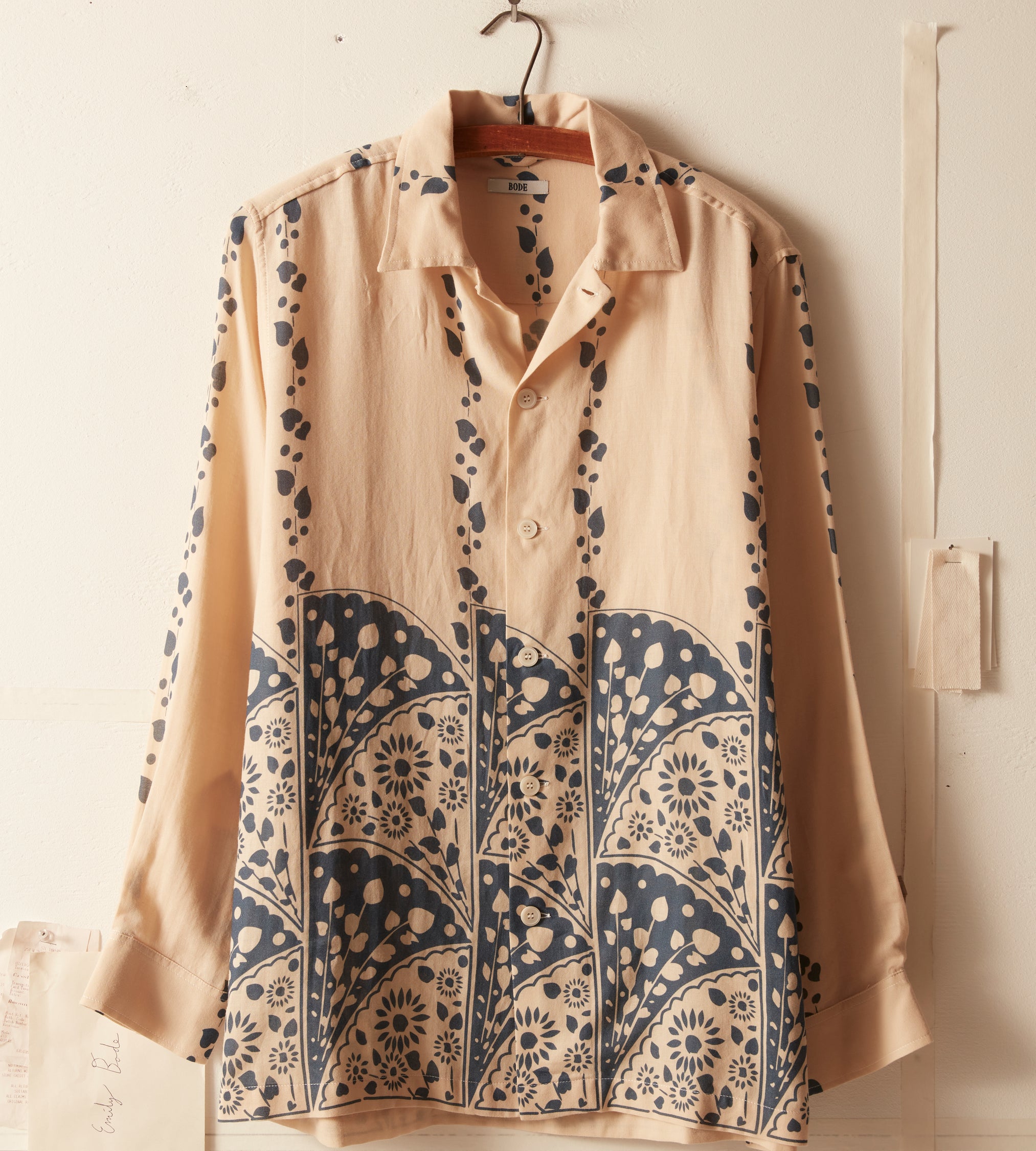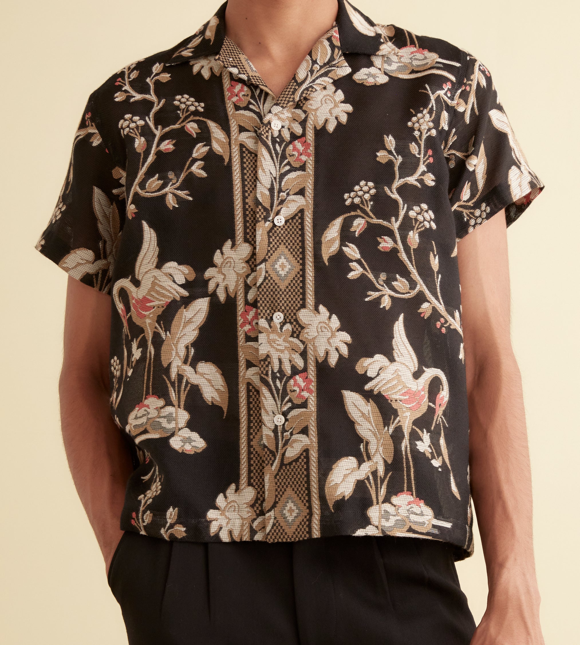 Parka en coton châtaigne doublée en fourrure synthétique imprimée de pommes noires.