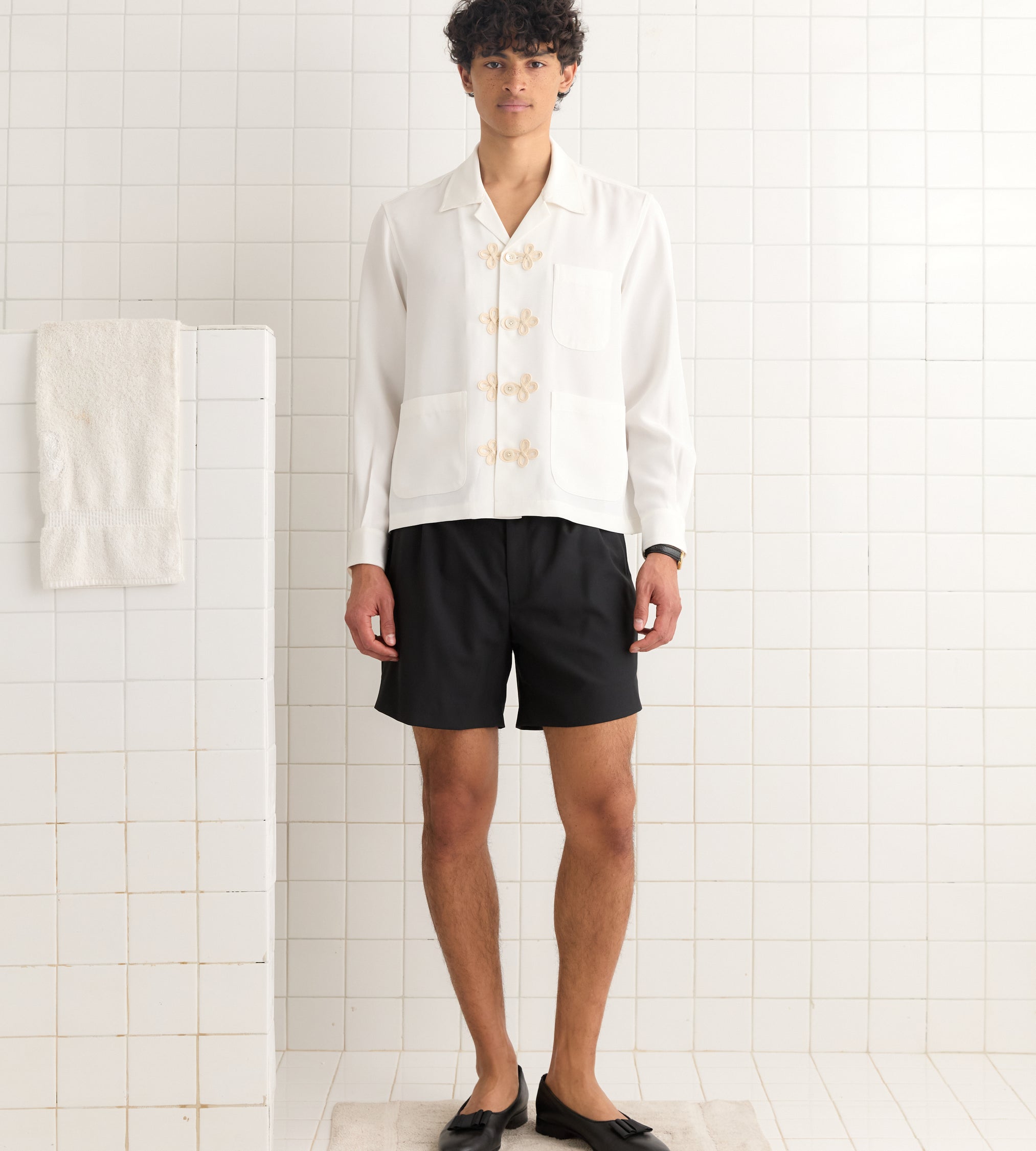 – Manches longues resserrées aux poignets par une manchette boutonnée