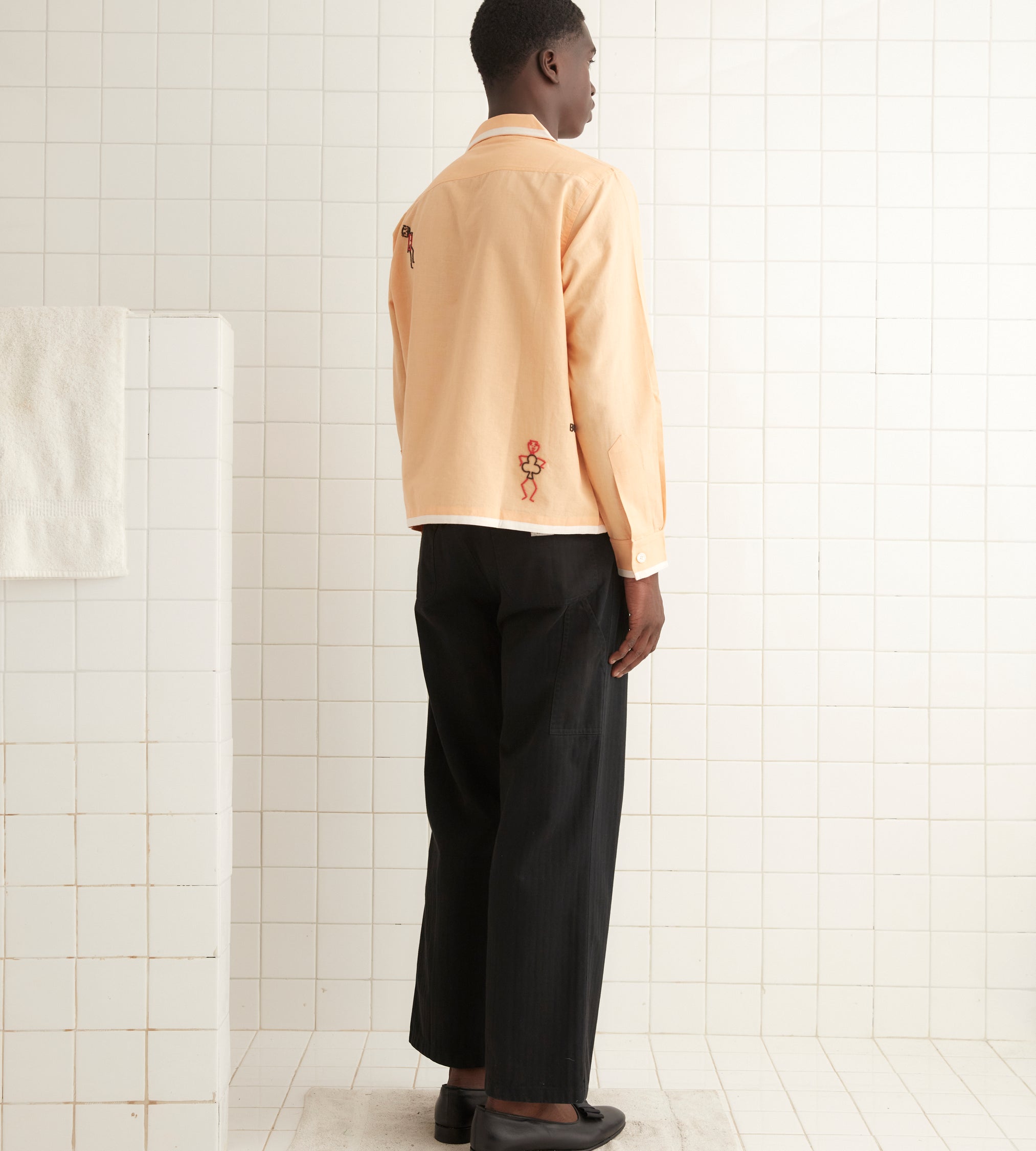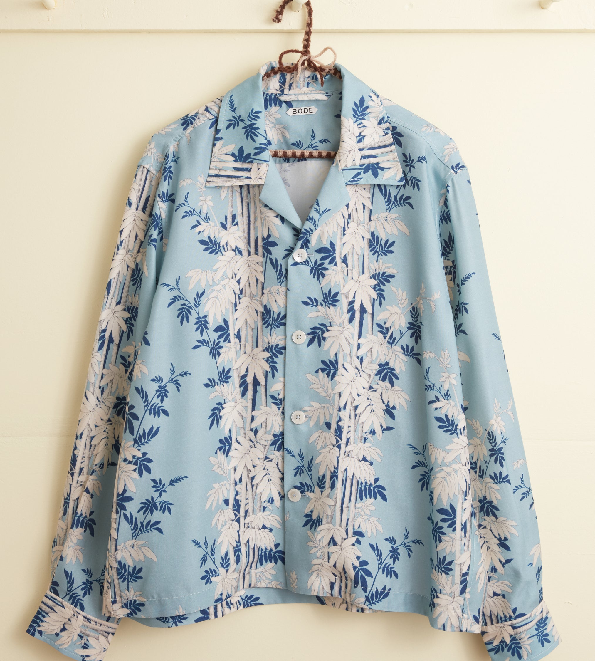 – Col et patte de boutonnage bordés d’un galon de broderie anglaise
