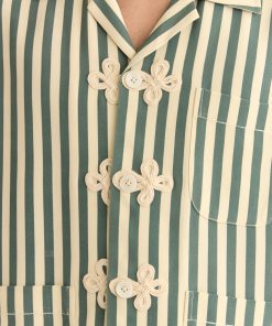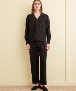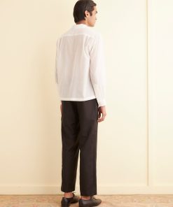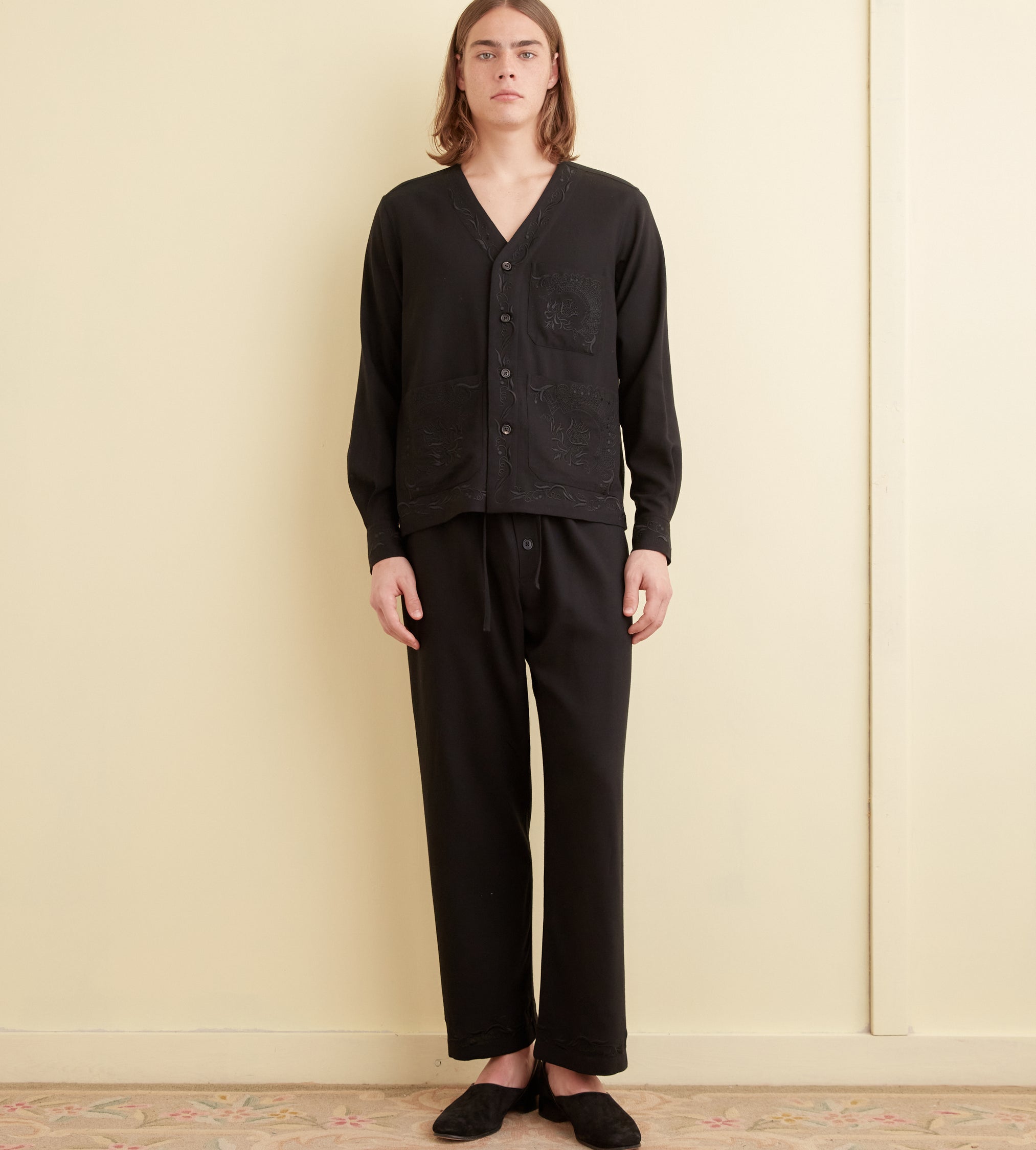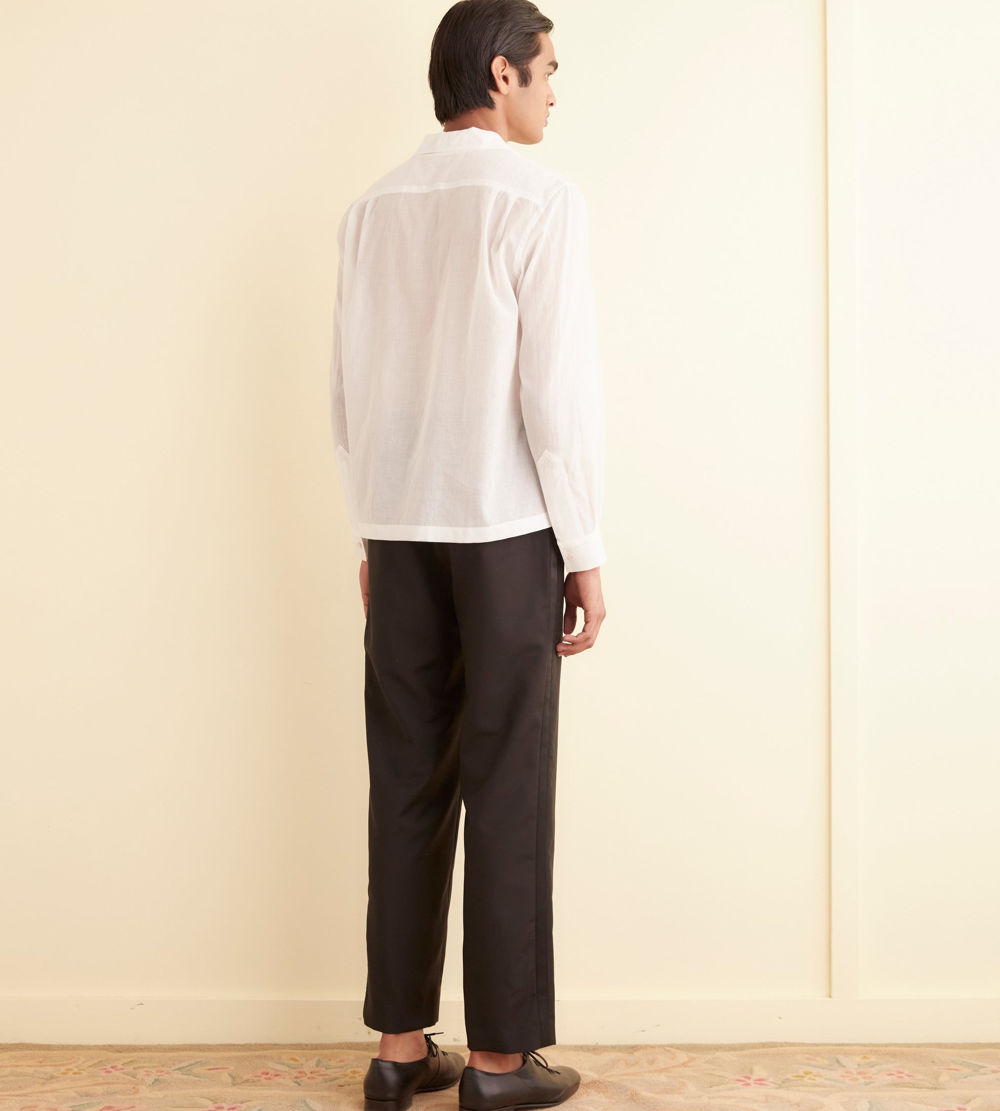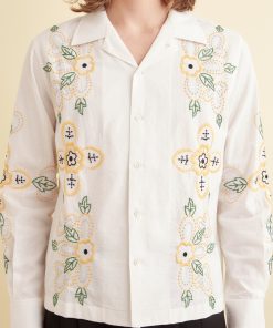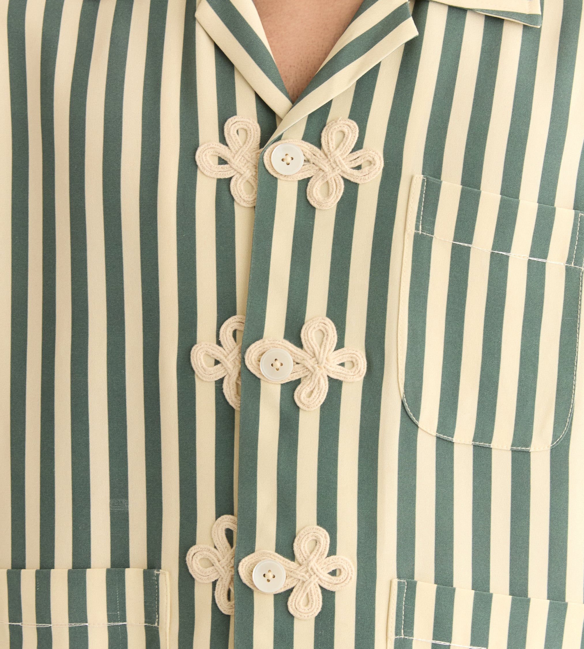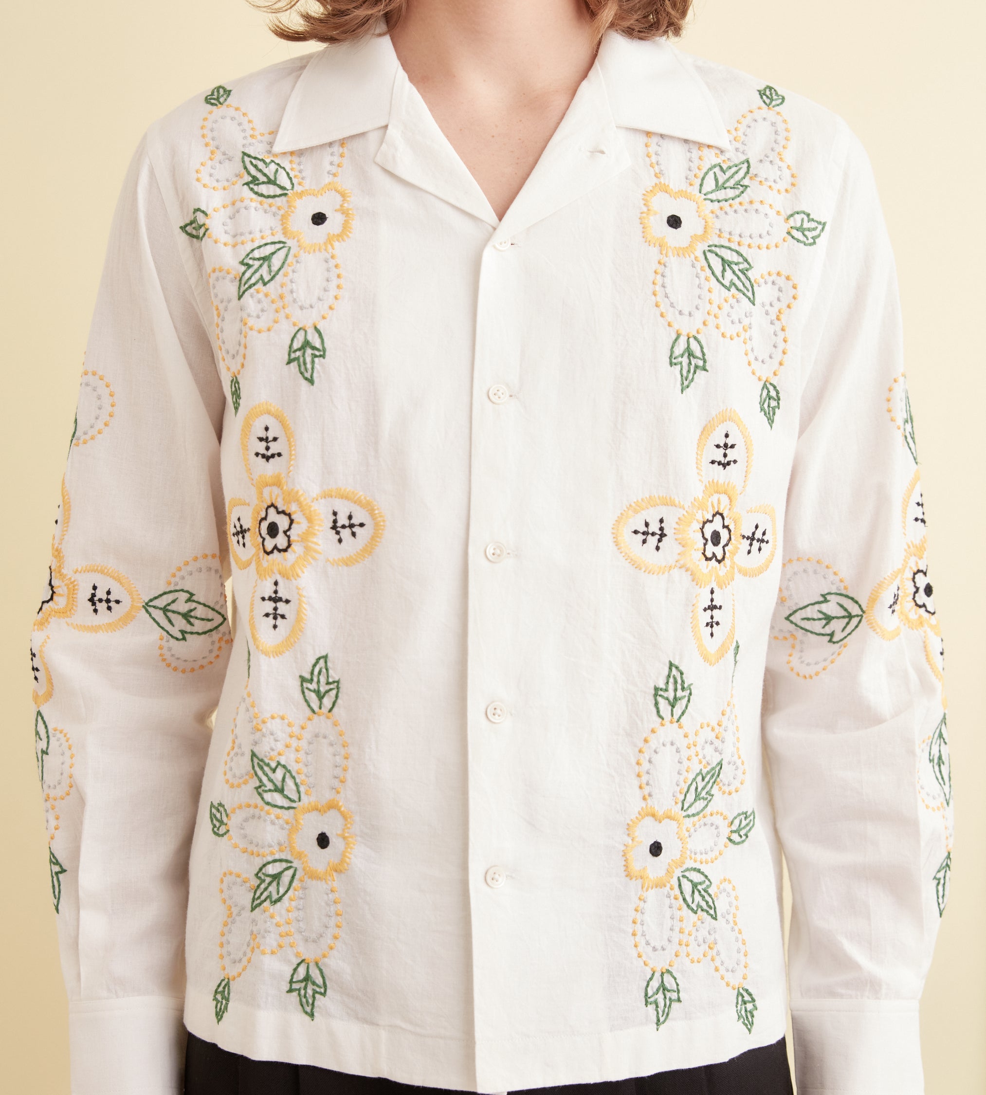 Tee-shirt à manches longues en jersey de coton biologique flammé écru imprimé de pois noirs.