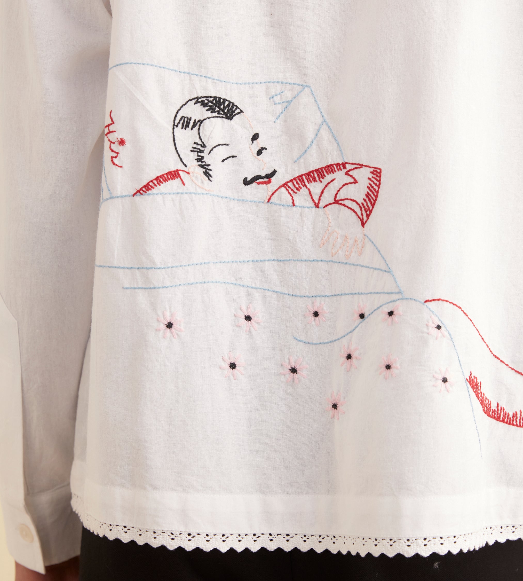 Pour cette seconde collab, une petite marguerite à l’expression espiègle et enjouée s’est invitée sur de jolis vêtements et sur tout un set de papeterie. Avec son regard en coin, son adorable sourire et ses couleurs un brin rétro, le motif Happy marguerite va enchanter la rentrée.