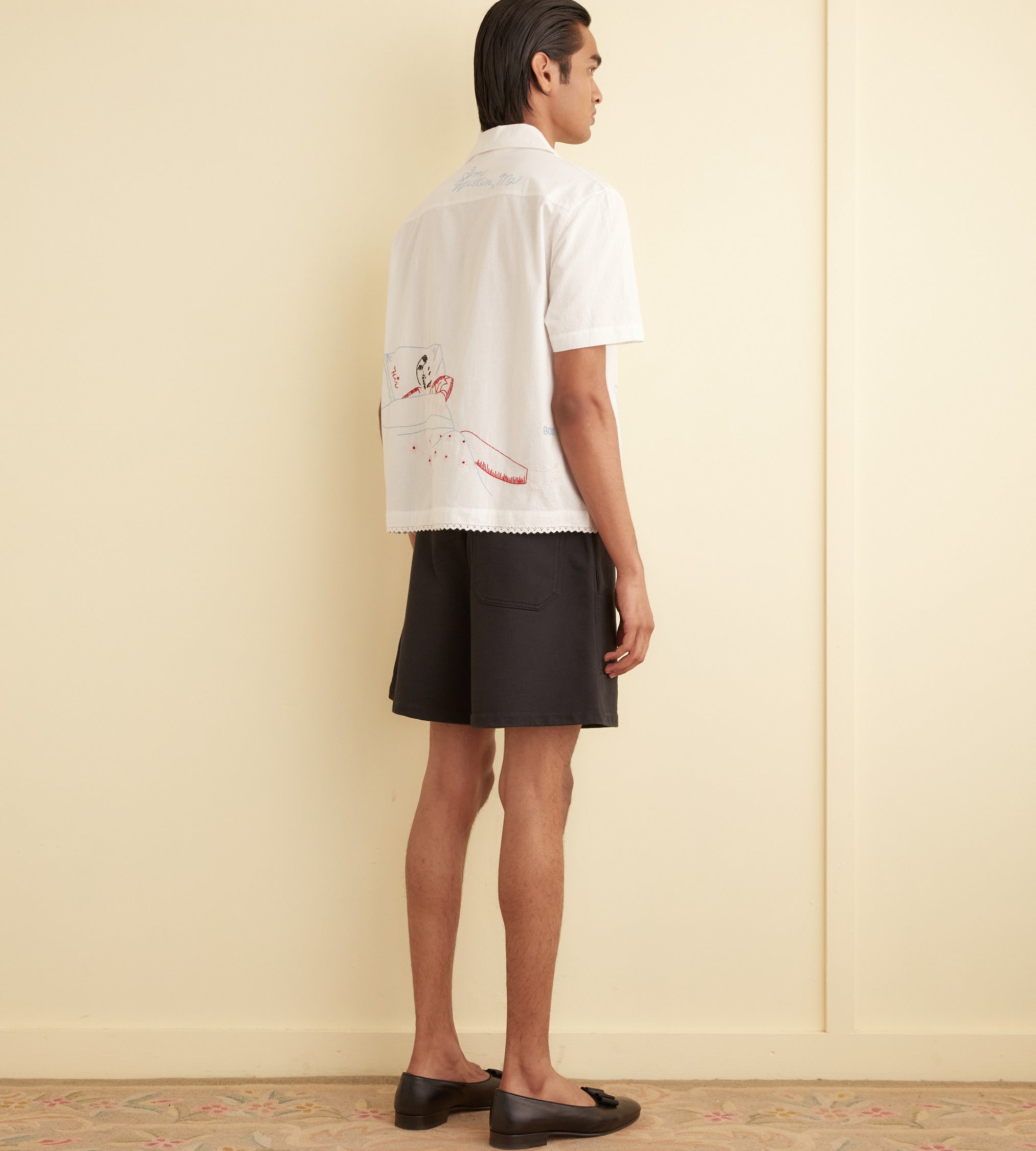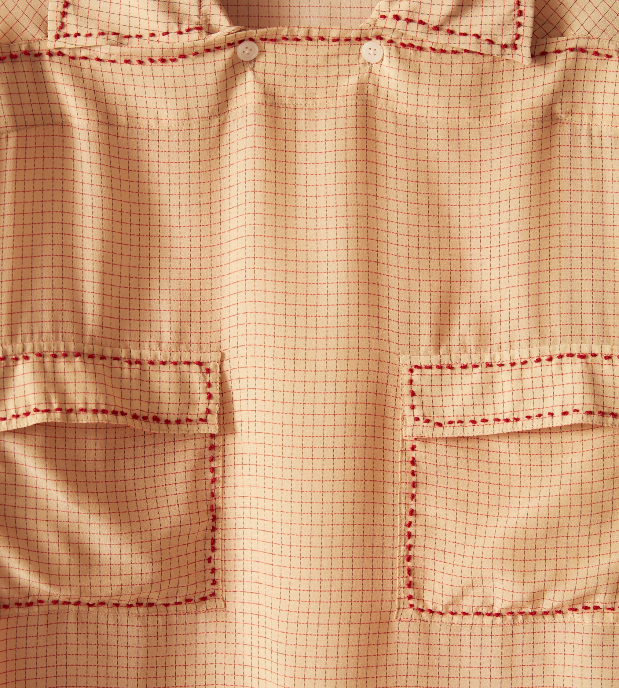 Et pour parfaire la blouse des broderies en fils doré bordent la collerette, le volant des poignets et la base.