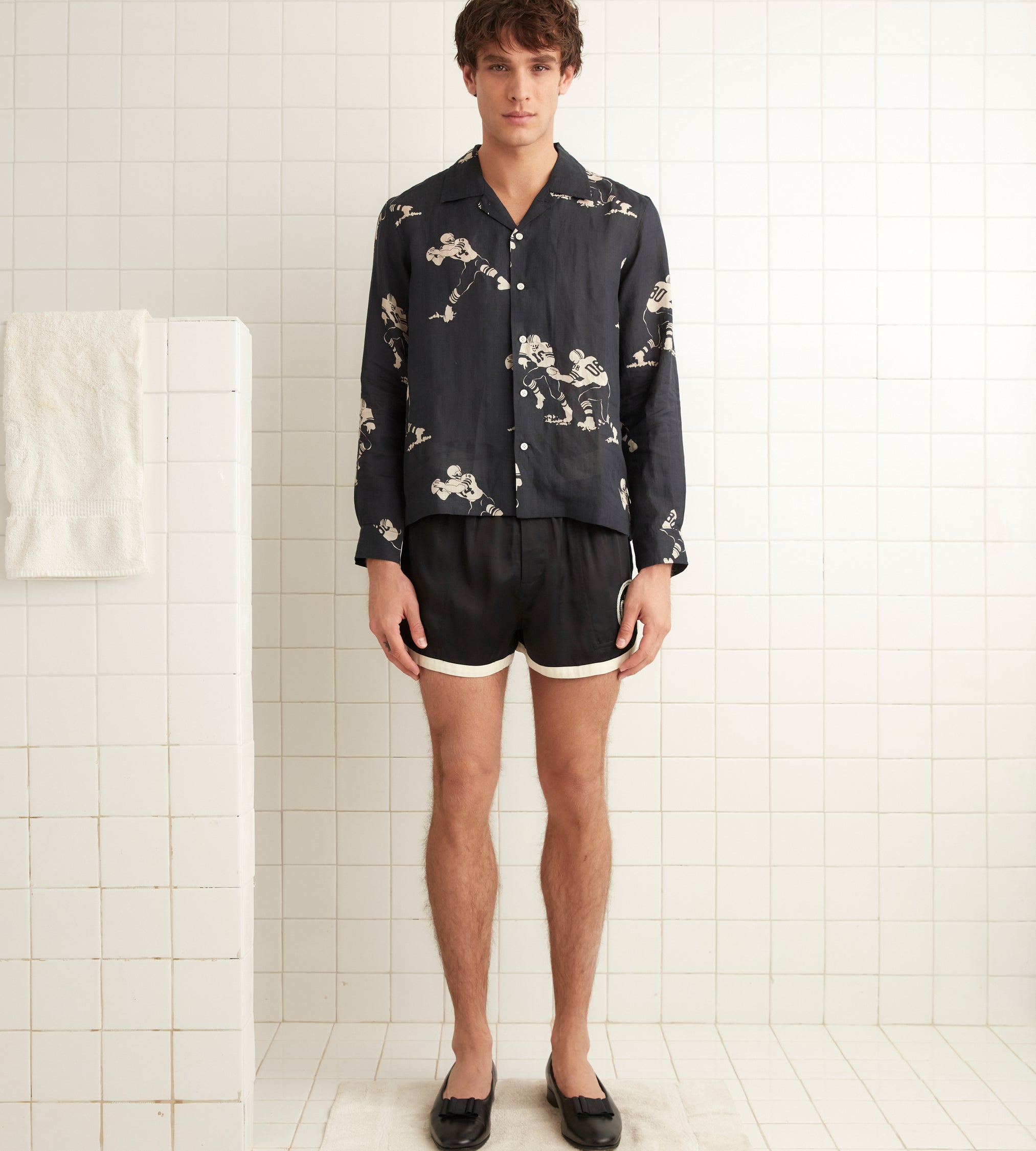 Blouse en coton vert où se promènent de petits lapins blancs.