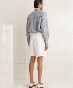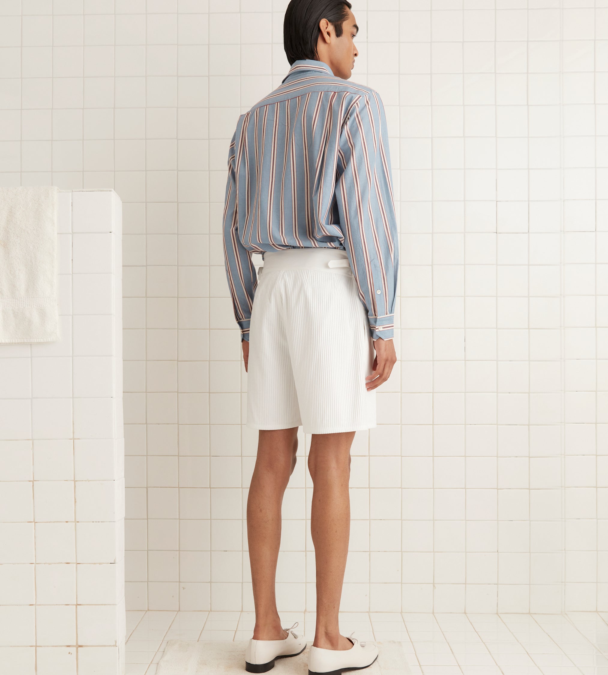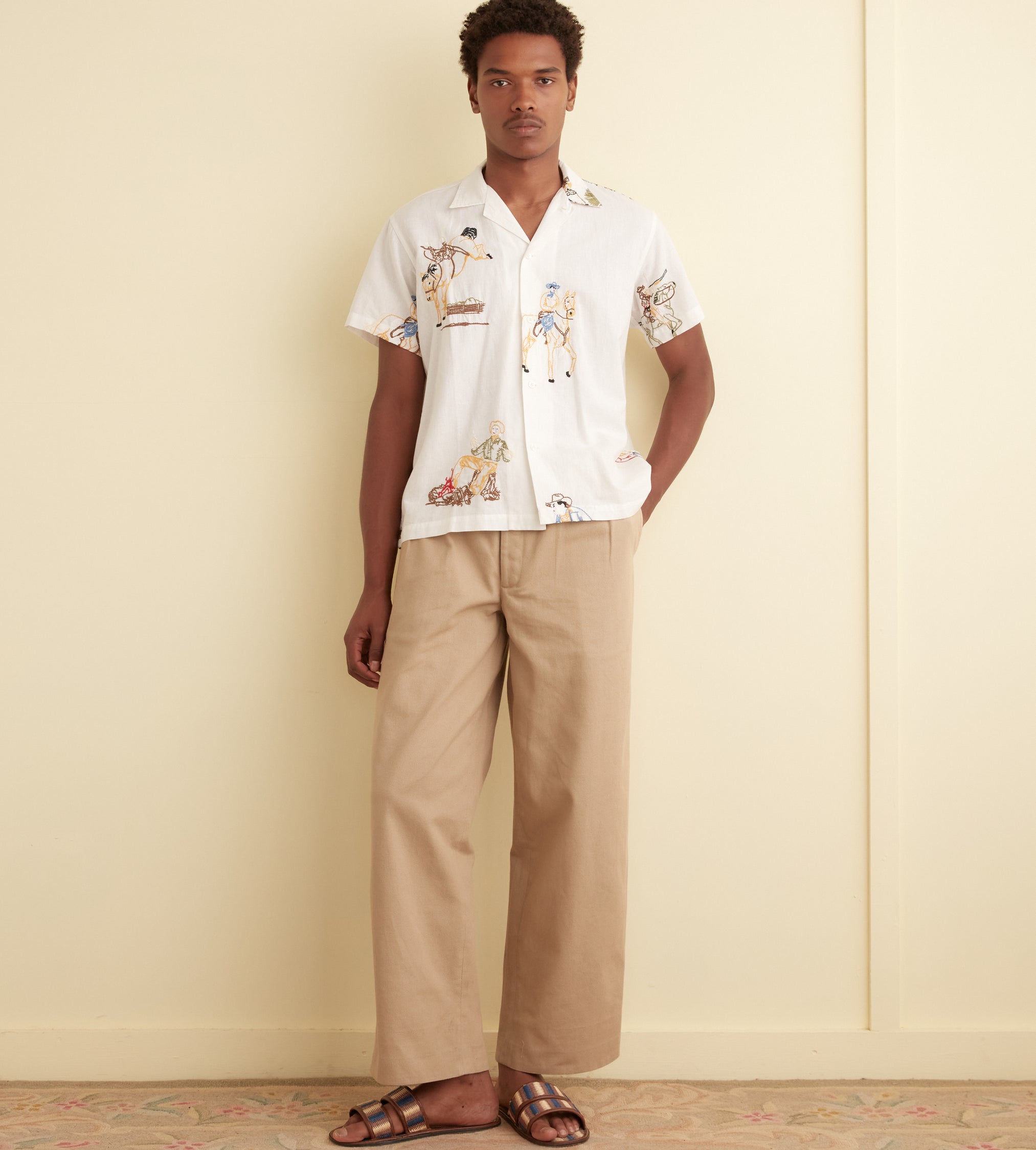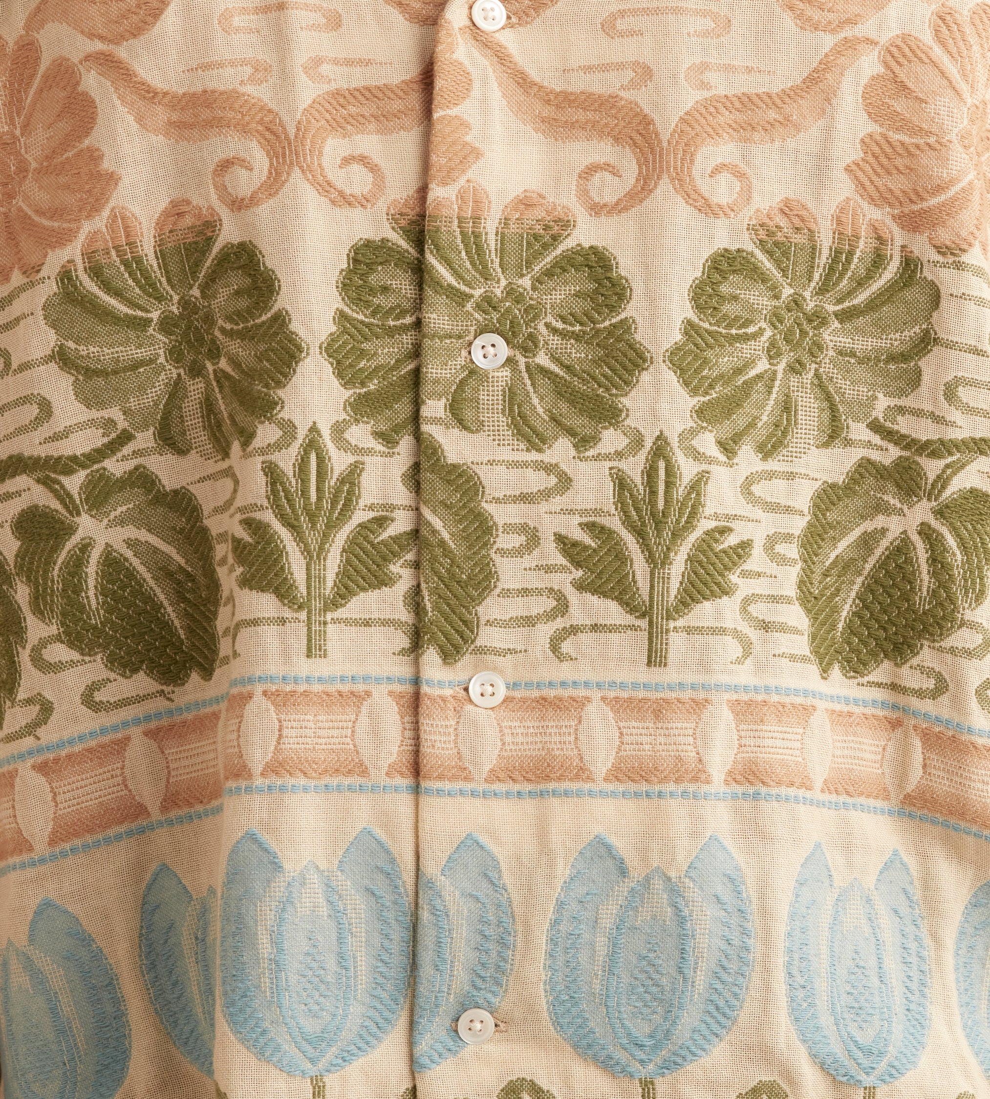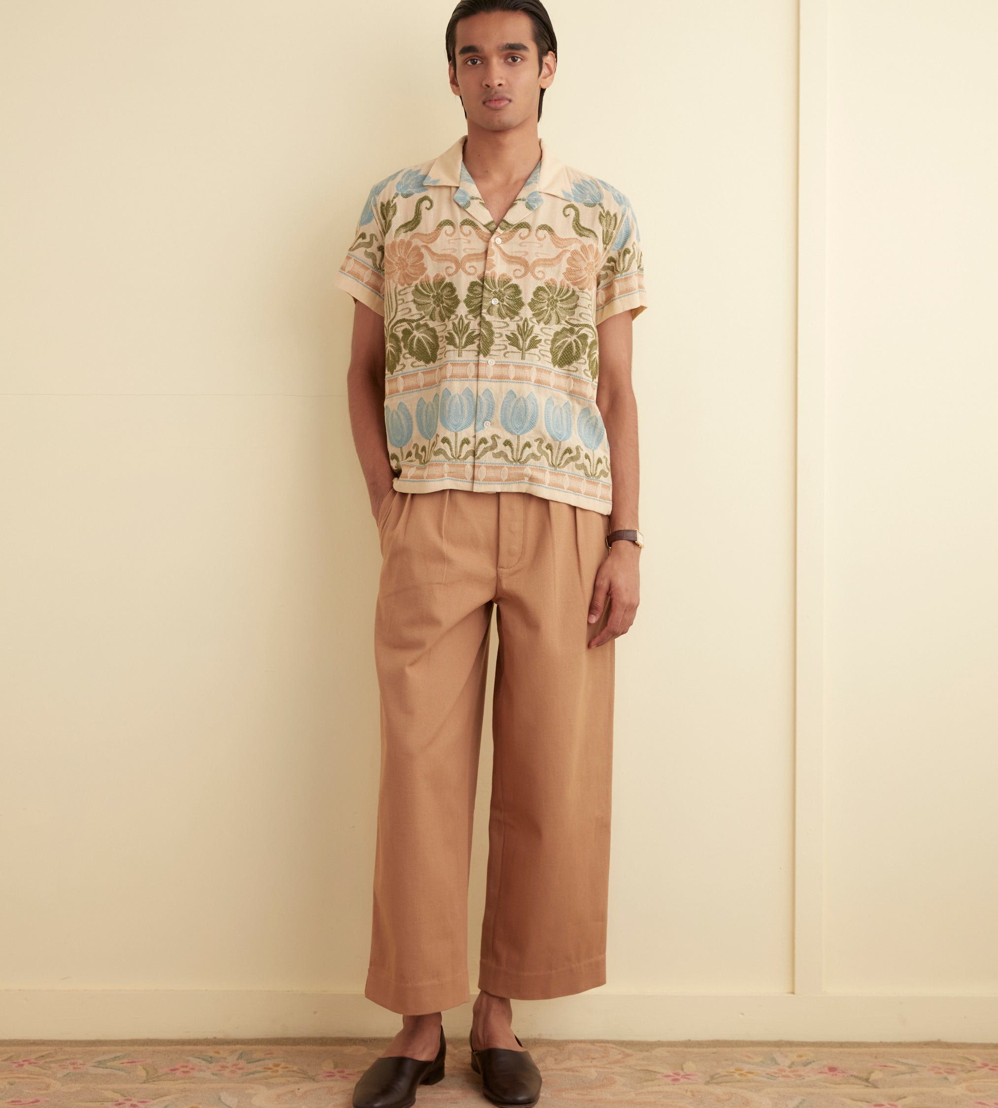 Ce modèle unique se distingue par ses fleurs brodées à la main, subtilement intégrées entre les lignes de smocks sur la poitrine.