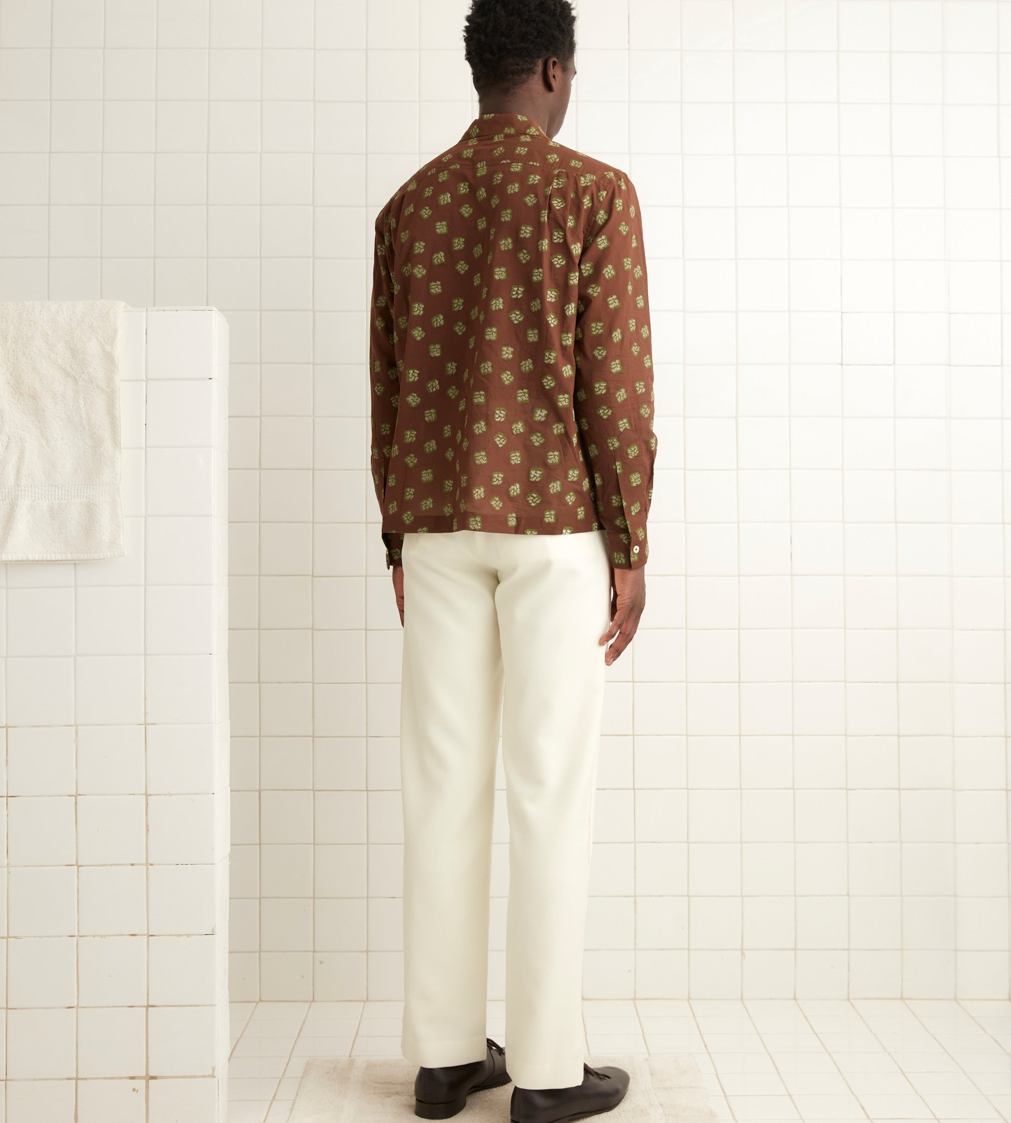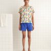 Sweatshirt en jersey de coton biologique bleu nuit molletonné et gratté imprimé en all-over d’écureuils crème.
