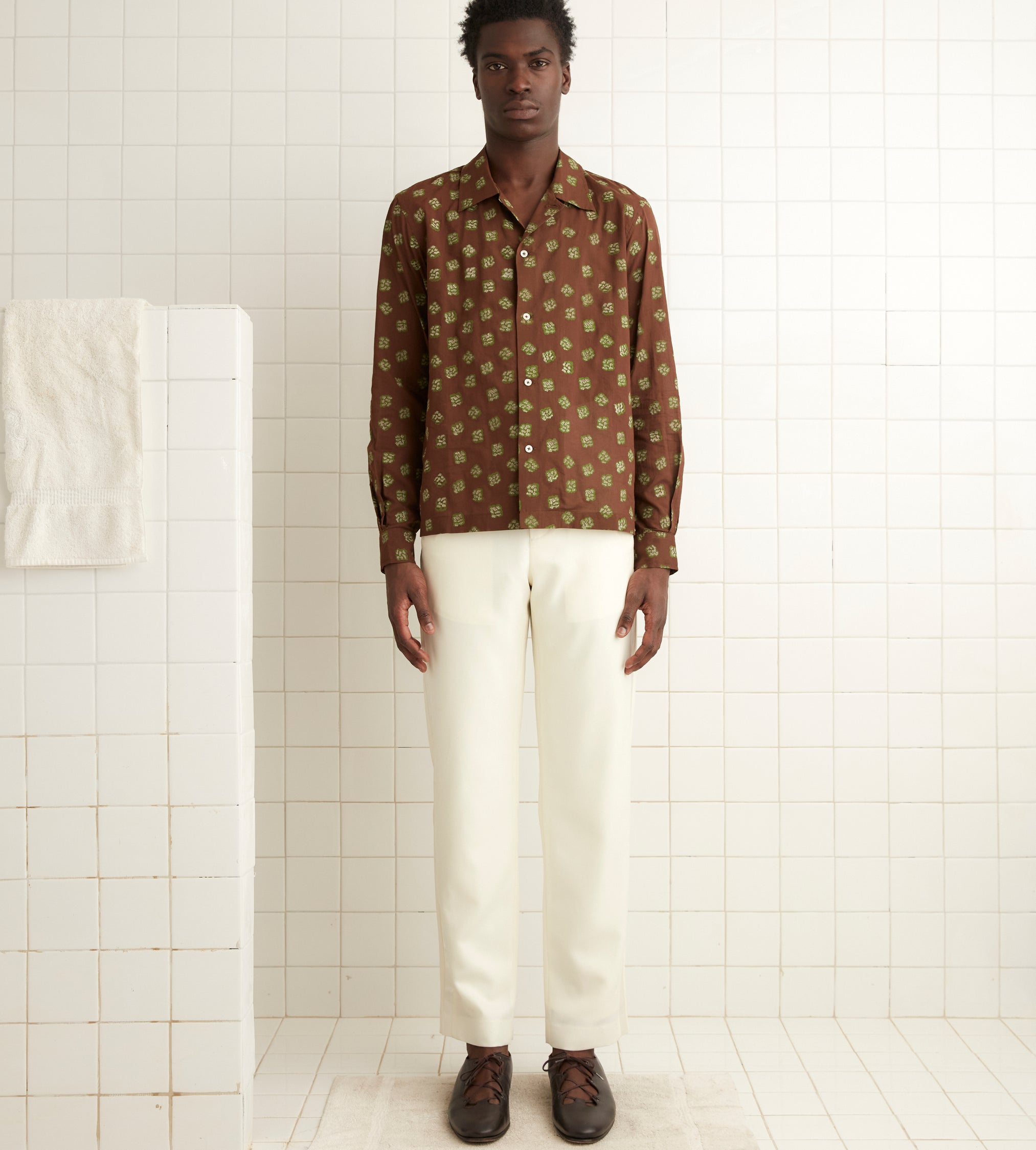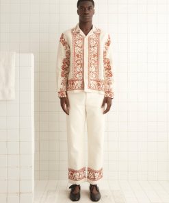 Sweatshirt en jersey de coton biologique molletonné et gratté écru imprimé de teckels caramel à bottes jaunes, nœuds papillon verts et chapeaux pointus bleus. C’est la fête chez les teckels !