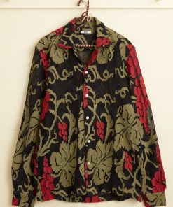 Sweatshirt en velours de coton biologique et polyester vert rayé de lignes blanches.
