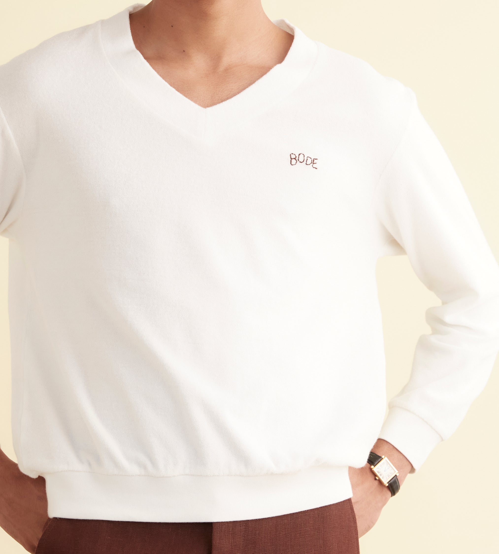 – Finitions en bord-côte ton sur ton autour de l’encolure