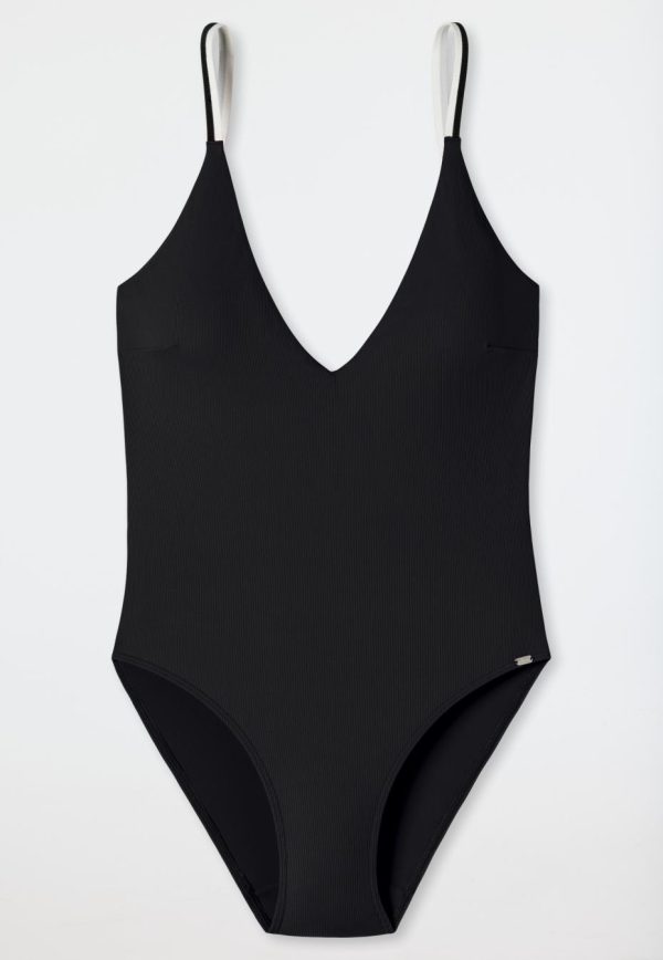 SCHIESSER Badeanzug | Badeanzug Gefüttert V-Ausschnitt Herausnehmbare Pads Verstellbare Träger Schwarz California Dream Schwarz Damen
