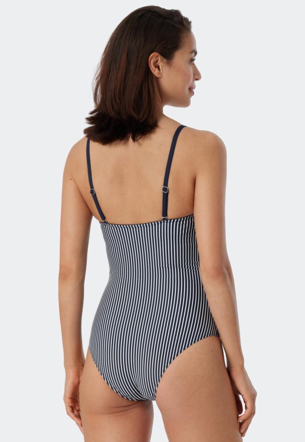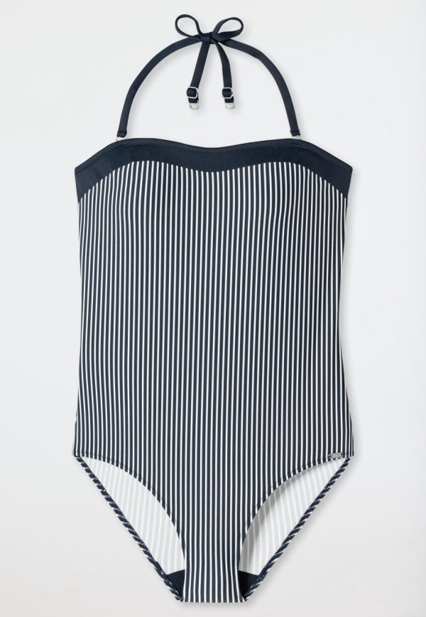 - dunkelblauer Damen Bandeau-Badeanzug mit Streifen und einfarbigem Kontrastband