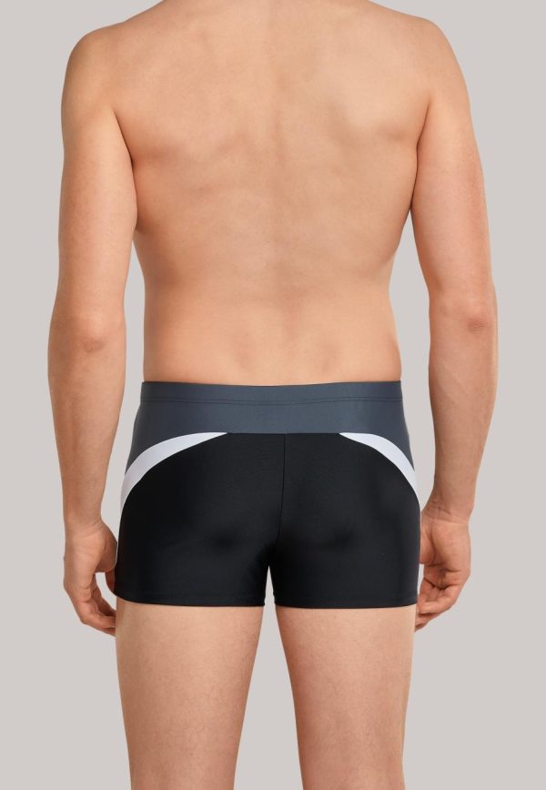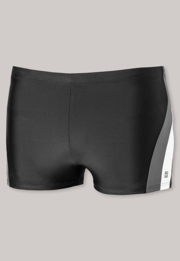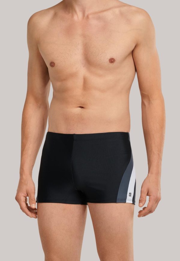 Diese schwarzen Badeshorts aus der SCHIESSER-Kollektion „Aqua“ überzeugen im sportlichem Look und mit einer perfekten Passform. Die seitlichen Streifen in Grau und Weiß sind im modernen Colour-Blocking ein optisches Highlight. Die elastische, recycelte Wirkware und ein weicher Innenslip sorgen für ein angenehmes Tragegefühl. Egal ob am Strand, Pool oder im Schwimmbad, in diesen eng anliegenden Shorts können anspruchsvolle Herren den Tag genießen – natürlich in bester SCHIESSER-Qualität!