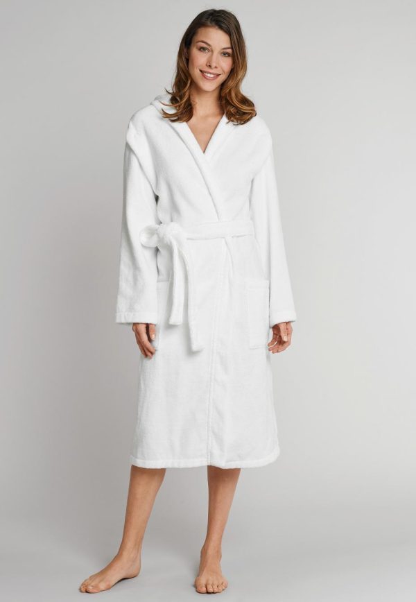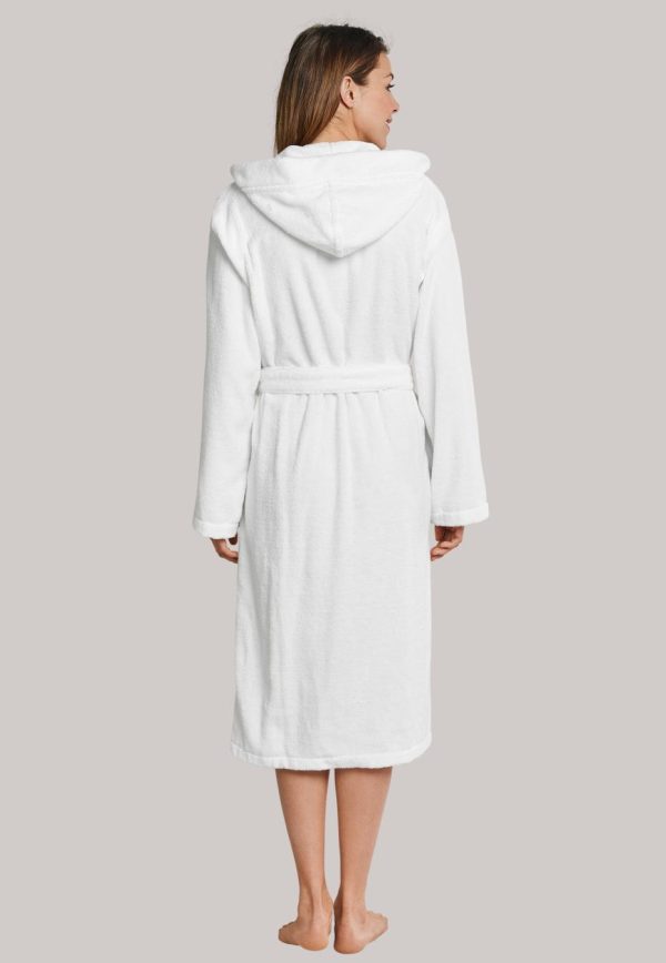 Kuschelige Basics mit Wohlfühlgarantie: Dieser weiße Damenbademantel verspricht herrlich gemütliche Stunden in bester SCHIESSER-Qualität! Große Taschen und die praktische Kapuze schenken dem Bademantel dabei eine Extra-Portion Behaglichkeit, die in weichem Frottee besonders soft auf der Haut spürbar wird. Ideal für Damen, die nach dem Bad oder am Morgen am liebsten in bester, wohliger SCHIESSER-Qualität entspannen!