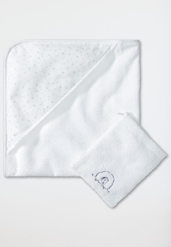 Ob zum Verschenken oder für den eigenen, kleinen Schatz, dieses weiße Baby-Badeset ist einfach immer der Hit! Graue Sternchen auf der Kapuzen-Ecke schenken dem Badehandtuch ein niedliches Detail, das von dem grauen, gestickten Schäfchen auf dem dazu passenden Waschlappen prima ergänzt wird. In hochwertigem, saugstarkem Frottee fühlen sich die beiden Badeaccessoires wunderbar weich an und verwöhnen Babys Haut rundum mit bester SCHIESSER-Qualität!