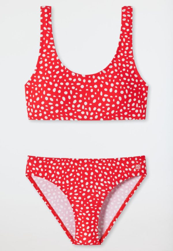 - Bustier-Bikini für Mädchen in Rot mit Allover-Muster aus weißen Punkten