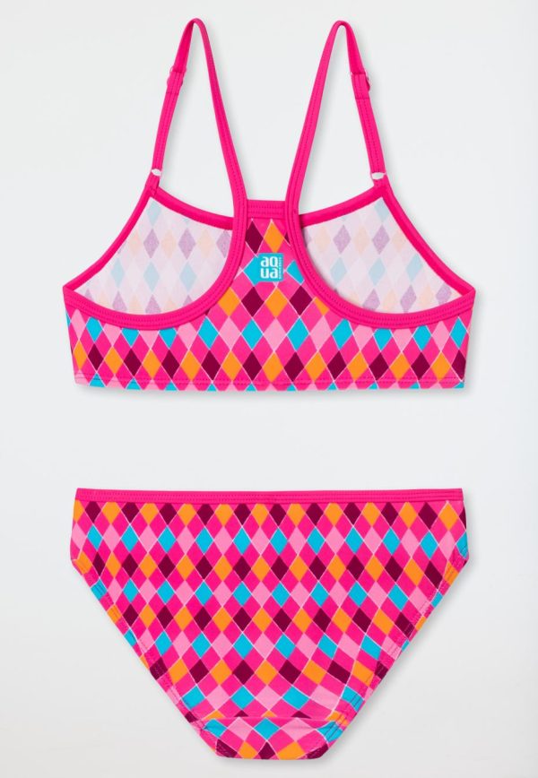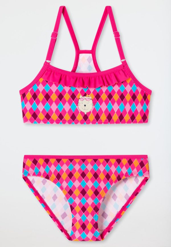 - Bustier-Bikini für Mädchen mit Ethno-Allover in Pink, Orange und Hellblau sowie Cat Zoe-Motiv