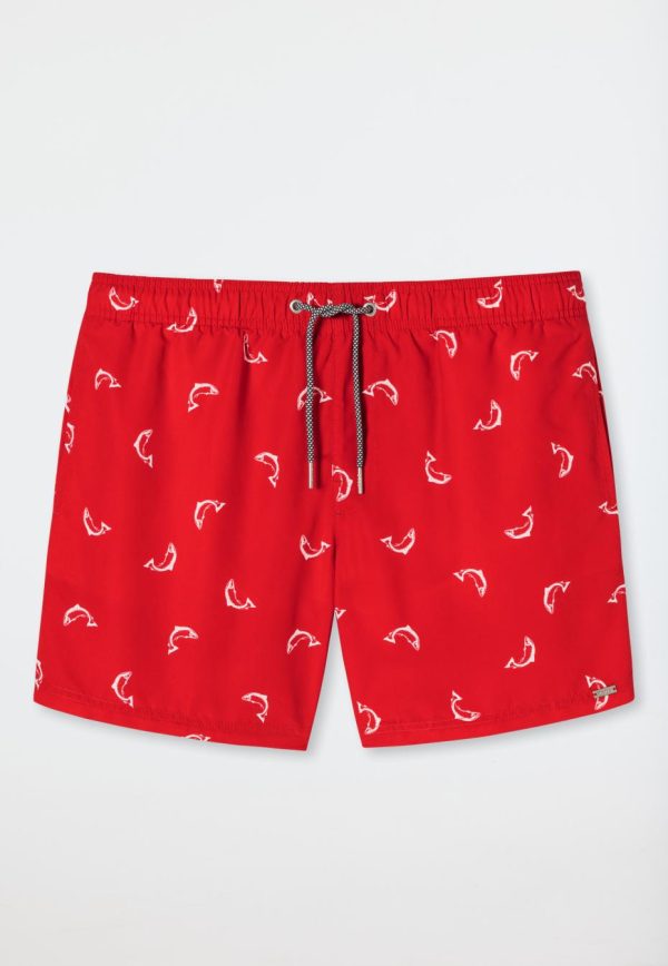 - rote Swimshorts für Herren mit weißem Fischmuster