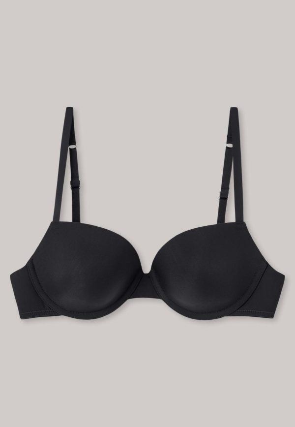 Im puren Design und in perfekter Passform umgarnt dieser schwarze Bügel-BH aus der SCHIESSER-Serie „Pure Effect“ anspruchsvolle Damen. Selbst unter körpernaher Kleidung verspricht der gepaddete BH mit seinen völlig glatten Cups ein besonders glattes, nahezu unsichtbares Erscheinungsbild und fühlt sich in hochwertigem Microfaser-Material sowie mit den nahtlos verarbeiteten Trägern herrlich weich an auf der Haut. Der perfekte T-Shirt-BH in bester SCHIESSER-Qualität!