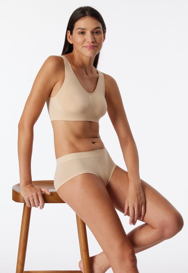 Seamless-Wäsche mit Wohlfühlgarantie: Dieses sandfarbene Bustier aus der „Seamless light“-Serie vereint raffiniertes Unterwäsche-Knowhow mit modernem Design. Mit soften, herausnehmbaren Cups, einem nahtlosen Abschluss und dem stimmigen Elastan-Anteil bietet das Bustier nicht nur höchsten Tragekomfort, sondern zaubert zudem eine wunderschöne, weibliche Silhouette. Die perfekte Shapewear für Damen, die bequeme, sanft stützende Wäsche in bester SCHIESSER-Qualität lieben!