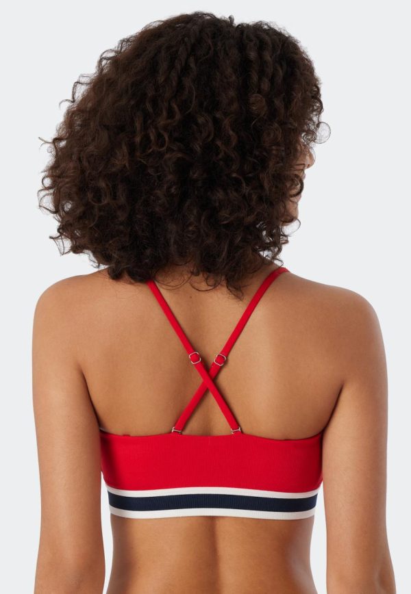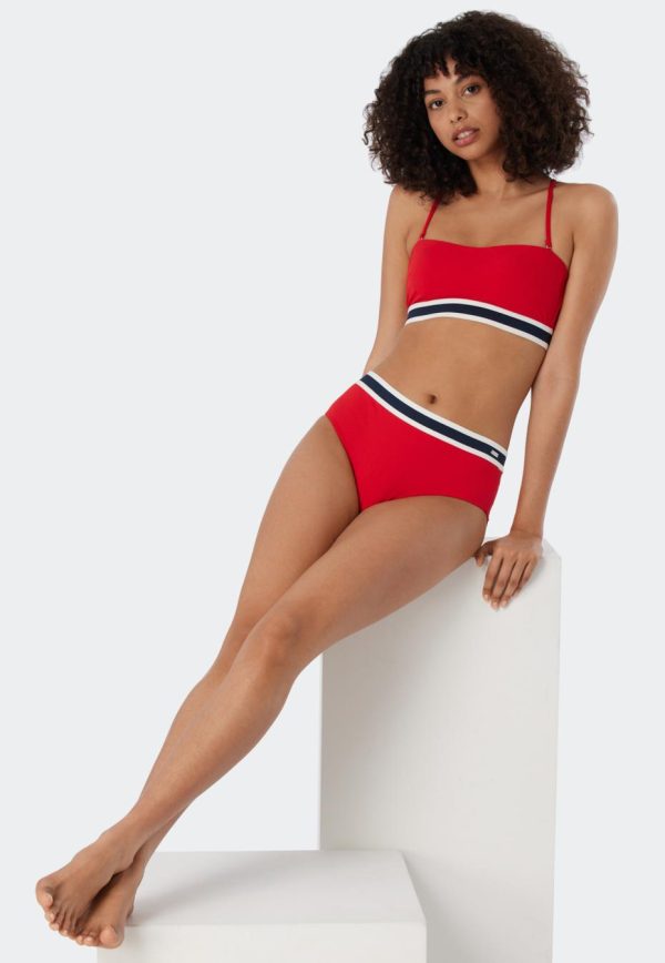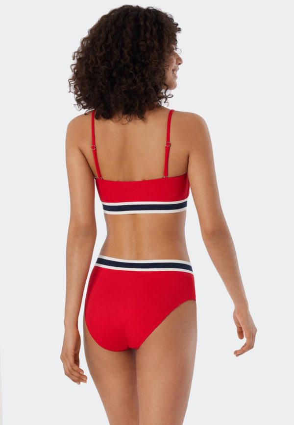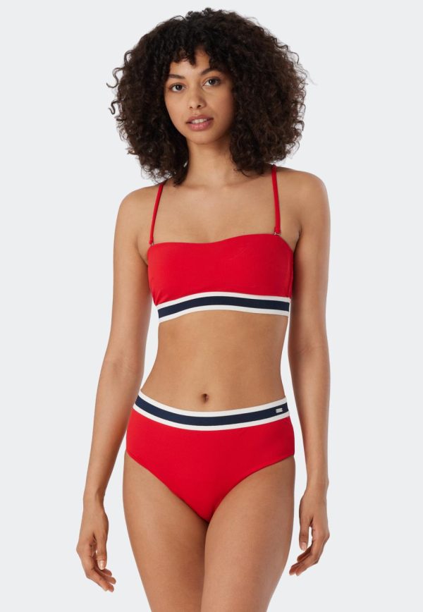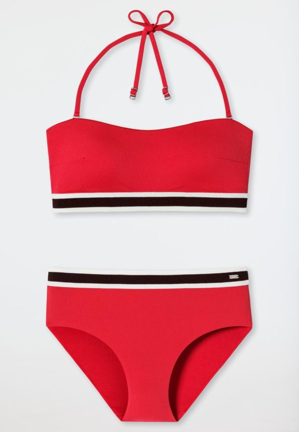 - rotes, gefüttertes Bandeau Bikini-Set für Damen in modischer Ripp-Optik