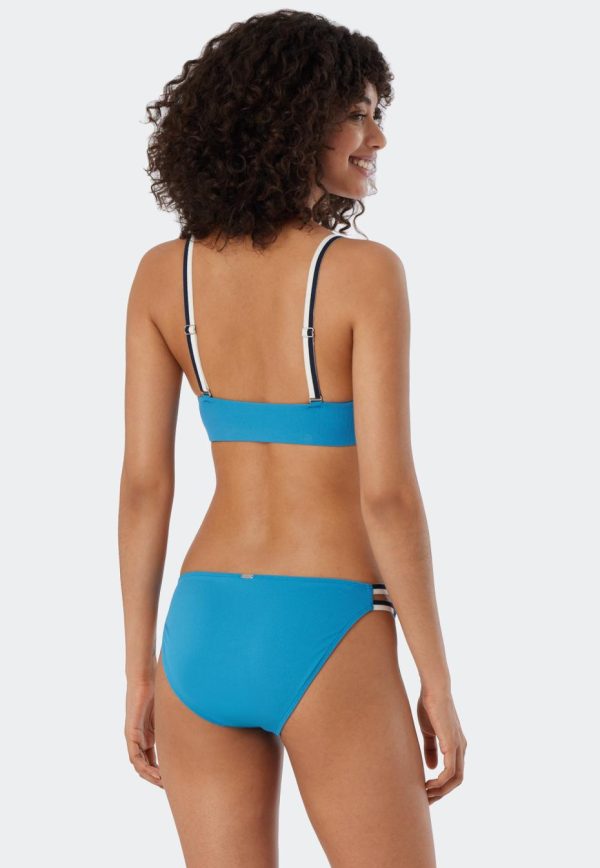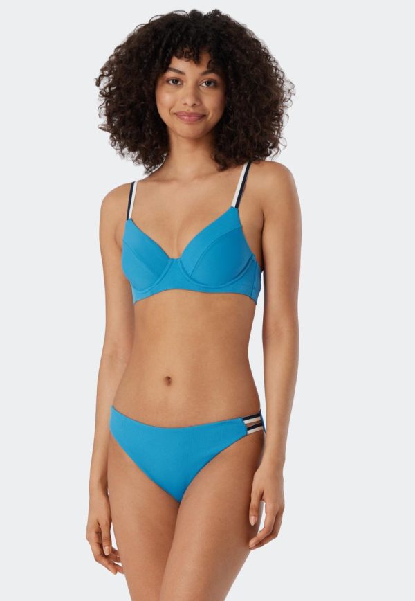 Ein sportlicher Style und tolle Farben: Mit diesem gefütterten Bügel-Bikini für Damen in modischer Ripp-Optik kann der Sommer kommen! Das Top sieht mit seinen gestreiften Trägern einfach gut aus. Diese lassen sich flexibel tragen: gerade oder über Kreuz. Die angenehmen Bügel sorgen für Halt. Zum dynamischen Look passt der Mini-Slip mit hübschen Streifen an den Seiten, die etwas Haut frei lassen. i-Tüpfelchen ist das softe Material aus recycelter Microfaser. Beste, nachhaltige SCHIESSER-Qualität!