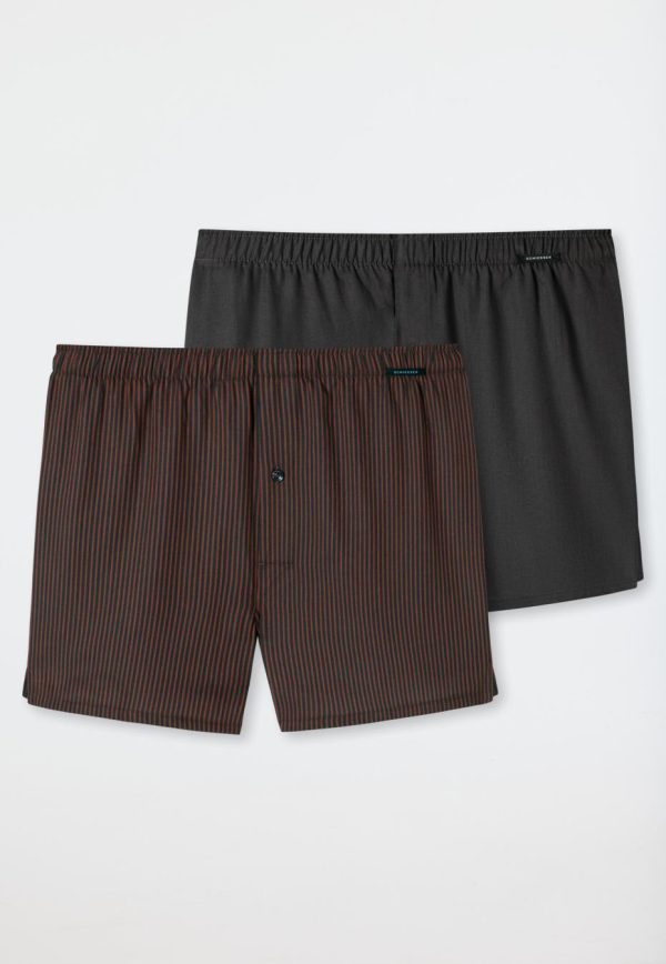 - Herren-Boxershorts im Zweierpack:1x Dunkelbraun, 1x Streifen-Design in Braun-Ocker