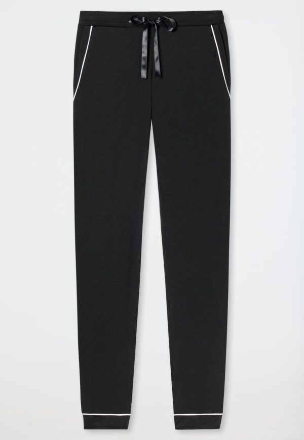 Lässige Loungemode mit eleganten Details: Diese wunderschöne, lange Damenhose ist nicht nur himmlisch bequem, sondern sieht dabei auch noch gut aus! Hingucker sind die weißen Paspeln an den schrägen Taschen und am Saum. Zum edlen Look passt das glänzende Satin-Bindeband. Auch beim Komfort bleiben keine Wünsche offen: Single Jersey aus Baumwolle und natürlichem Modal ist besonders soft und atmungsaktiv. Beste SCHIESSER-Qualität zum Mixen und Relaxen! Auch in extra-lang erhältlich!