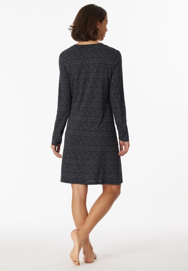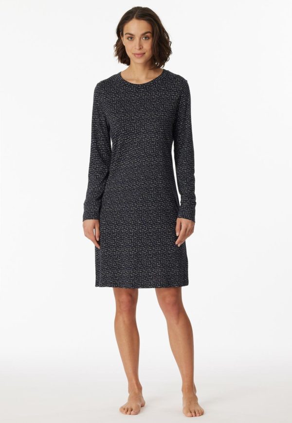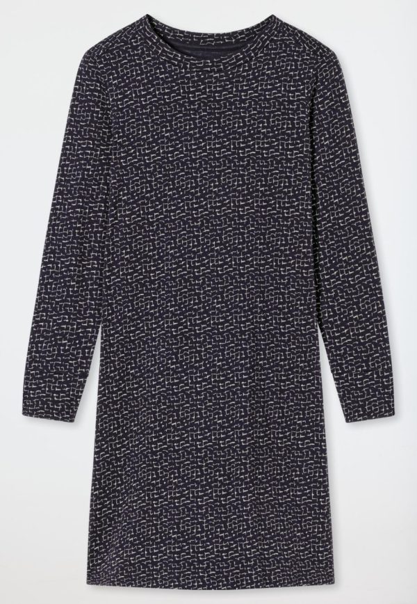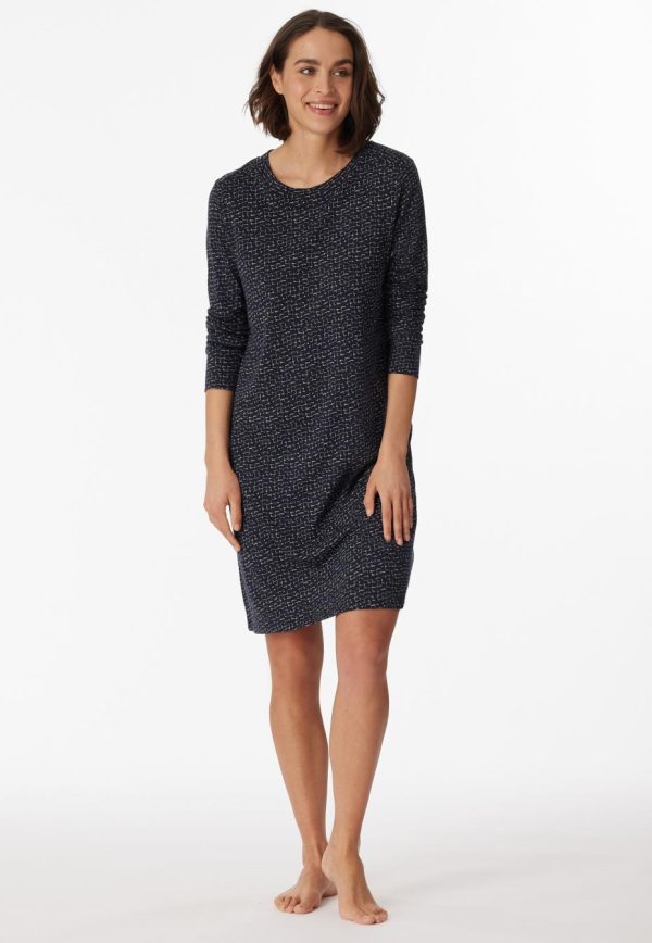 - nachtblaues Langarm-Sleepshirt für Damen mit Grafikprint