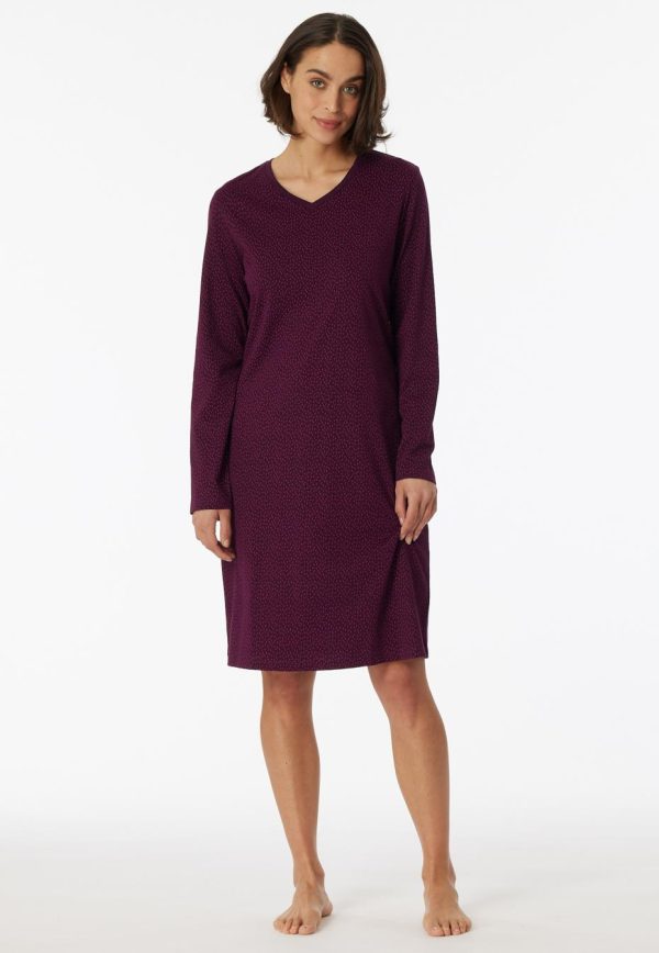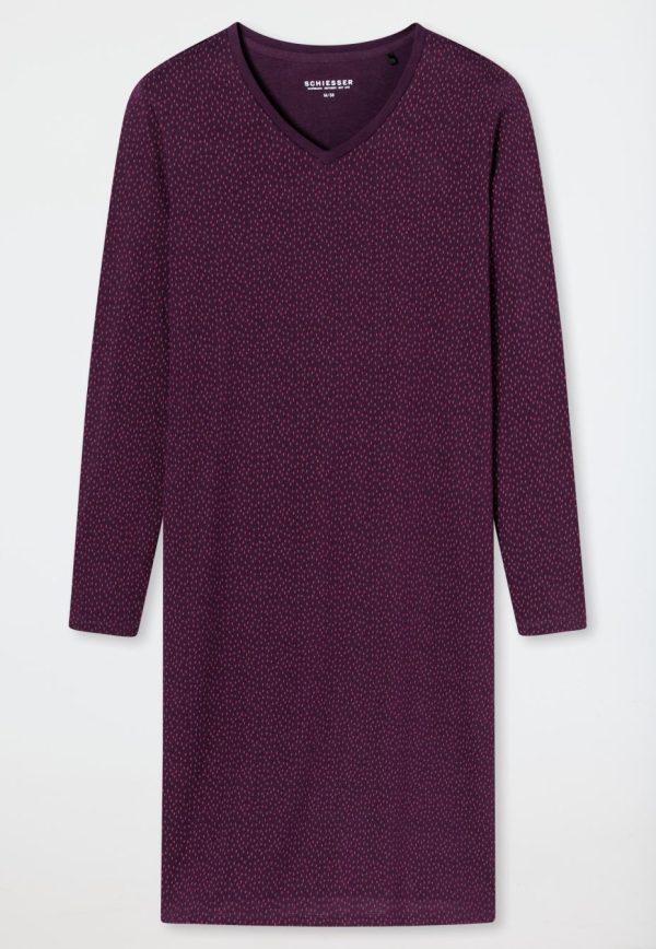 SCHIESSER Nachthemden | Sleepshirt Langarm V-Ausschnitt Punkte Pflaume Comfort Essentials Pflaume Damen