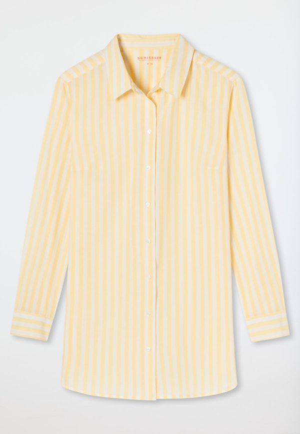 Der ideale Begleiter für warme Sommernächte ist dieses langärmelige Damen-Sleepshirt! Sein lässiger Streifen-Look verleiht ihm das gewisse Etwas. Dazu passt das wunderbar klassische Design mit Hemdkragen, durchgehender Knopfleiste und Manschetten mit Knöpfen an den Armabschlüssen. Für Komfort sorgen der abgerundete Saum und die Kellerfalte an der Schulterpasse. Herrlich leichte Webware aus 100% nachhaltigem Organic Cotton macht das Wohlgefühl perfekt. Genießen Sie beste SCHIESSER-Qualität!