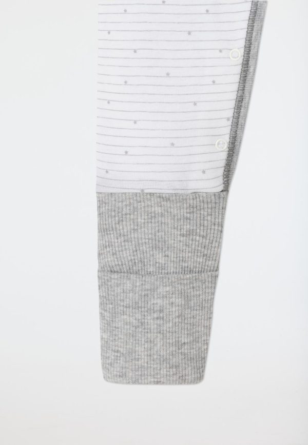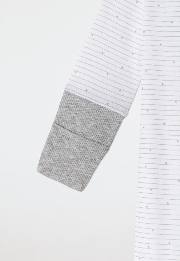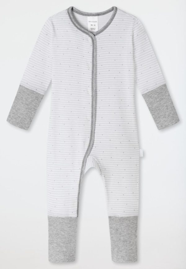 - langer, weiß-grau geringelter Unisex-Babyanzug