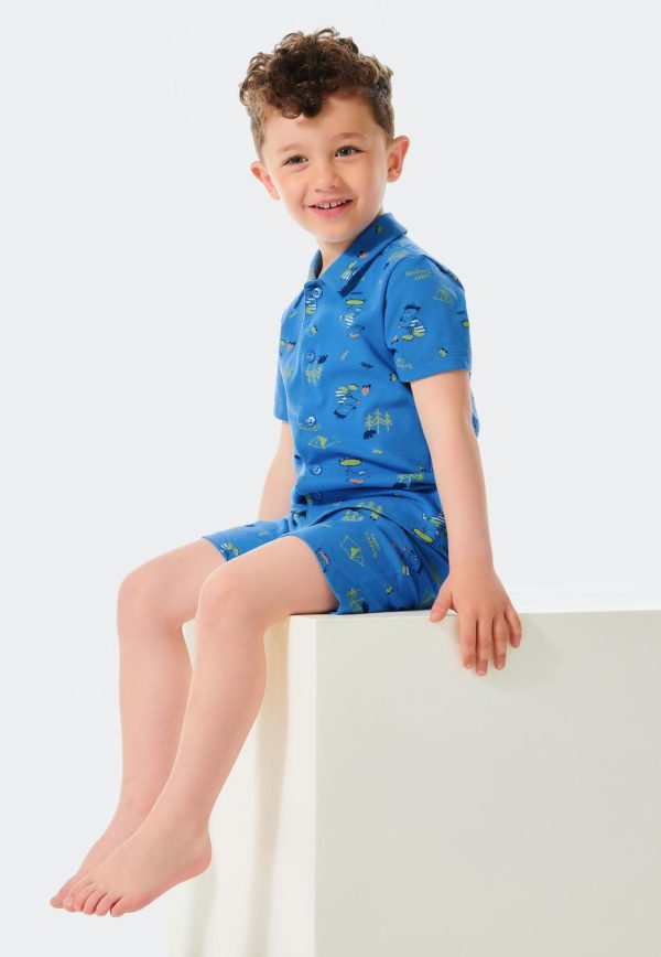 - kurzer Pyjama für Jungen in Blau mit Rat Henry und Camping-Allover