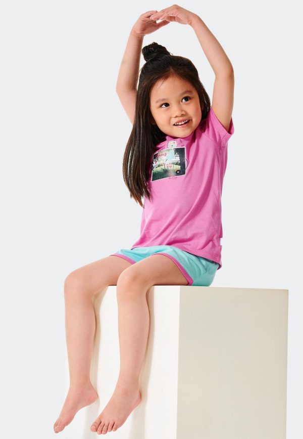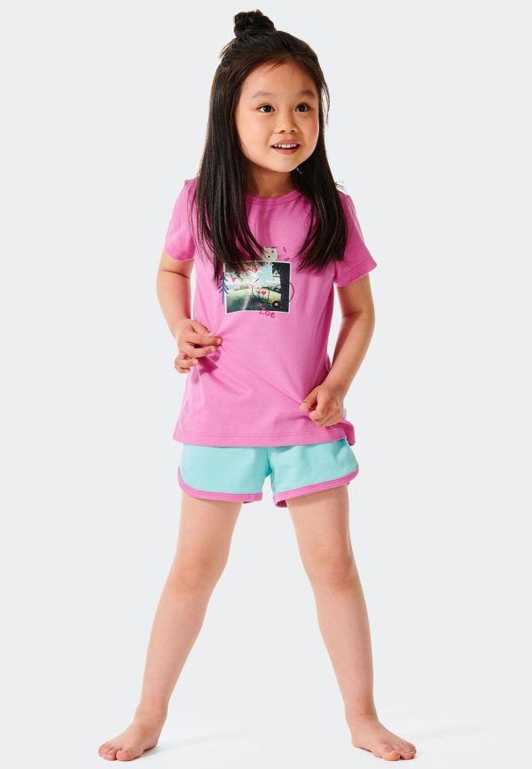 - kurzer Mädchen-Schlafanzug in Pink mit Cat Zoe-Motiv und Fotodruck sowie Schlafhose in Türkis